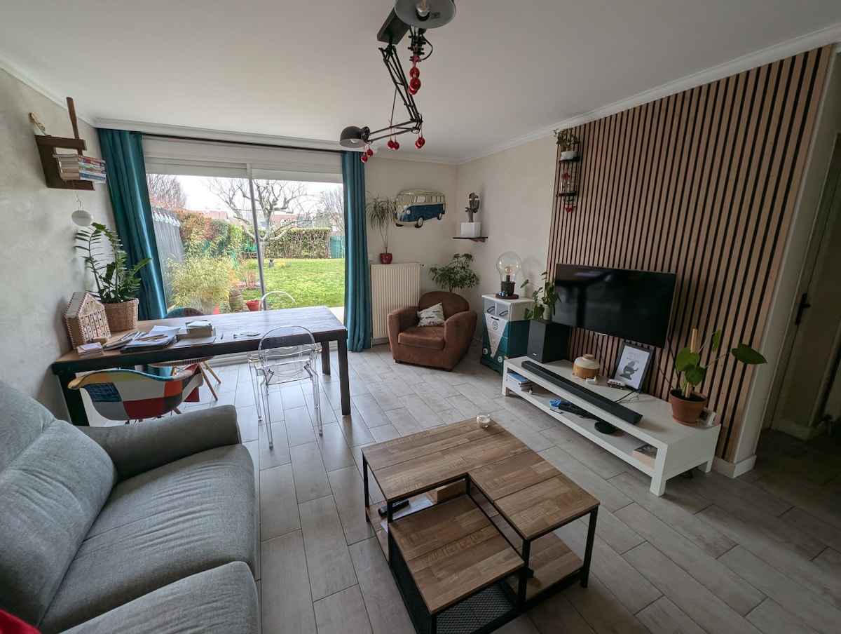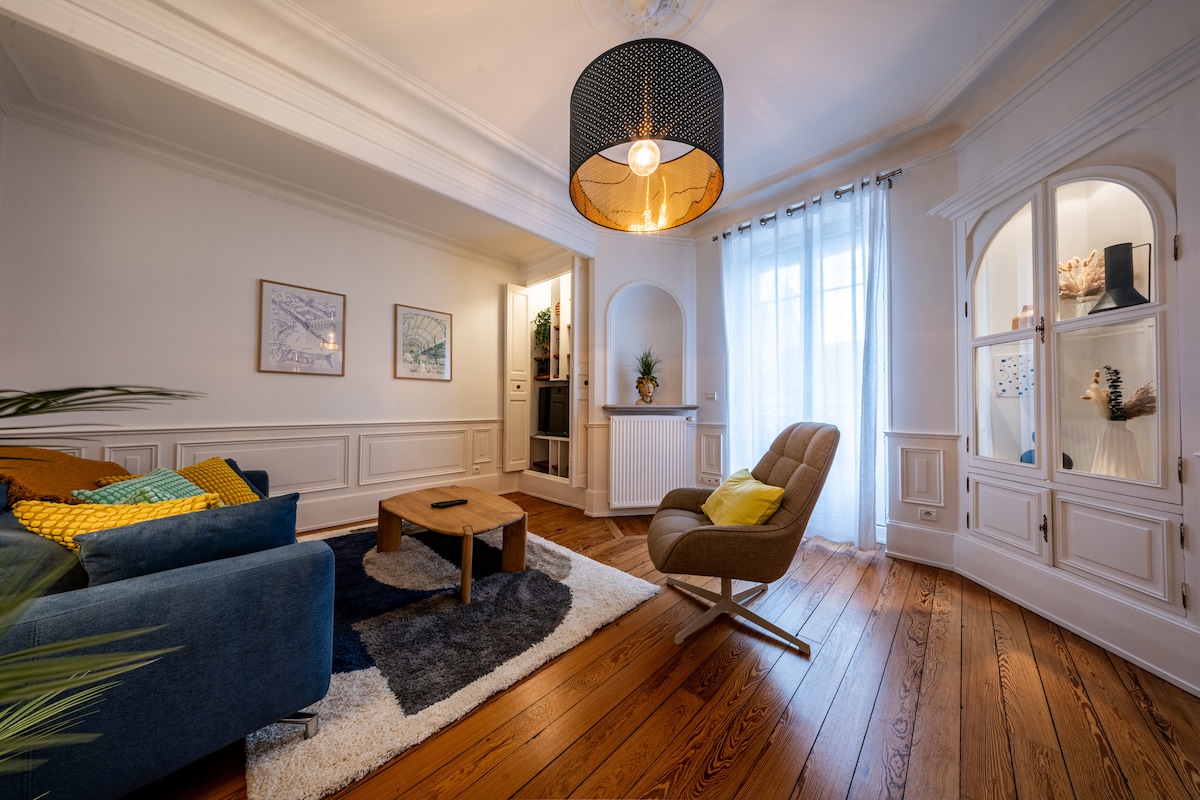 Nous avons entièrement rénové notre appartement en plein centre ville pour en faire un espace chaleureux et agréable à vivre. Tout est pensé pour votre confort : un salon accueillant, une cuisine équipée, une chambre avec une literie confortable et une salle de bain moderne. Vous y trouverez tout le nécessaire pour un séjour sans souci : WiFi, machine à laver, sèche-cheveux… Que vous soyez en voyage ou en déplacement, nous serons ravis de vous accueillir !