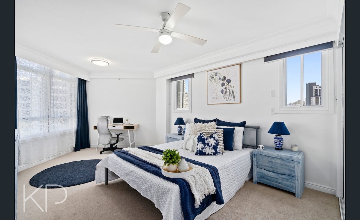 Escape to our cozy 1-bedroom, 1-bathroom apartment on Chevron Island, perfectly positioned for a relaxing Gold Coast getaway. Enjoy stunning east-facing views of the Surfers Paradise skyline from your balcony. A short 9-minute walk to patrolled beaches, Surfers Paradise precinct, and the renowned Home of the Arts (HOTA). Cafes, restaurants, and boutique shops are just steps away. Stylish open plan living, updated kitchen, full HD Android TV with Netflix, Superfast Wi-Fi, A/C and ceiling fans.