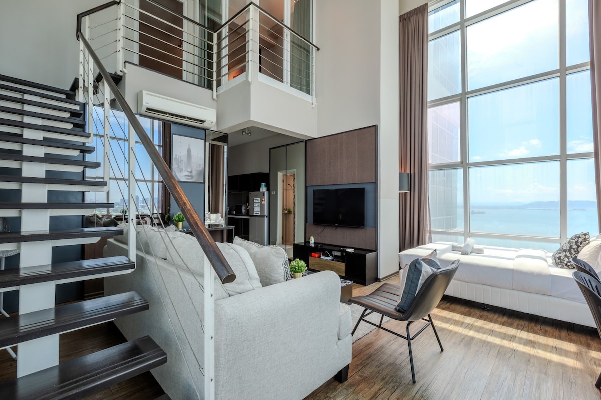 Coastal Serenity with Ocean View Welcome to your tranquil seaside escape at Seafront & Seaview_NordicHouse by Hanoverien Suites — a beautifully styled, light-filled space designed for comfort, relaxation, and unforgettable coastal moments. -Turn left to : Georgetown Tourist Attractions, Gurney & Pulau Tikus -Turn right to : Tanjung Bungah, International Schools and Batu Ferringhi beach. -Immediate adjacent to : International Schools at Straits Quay 槟城国际学校 국제학교 国際学校 こくさいがっこう