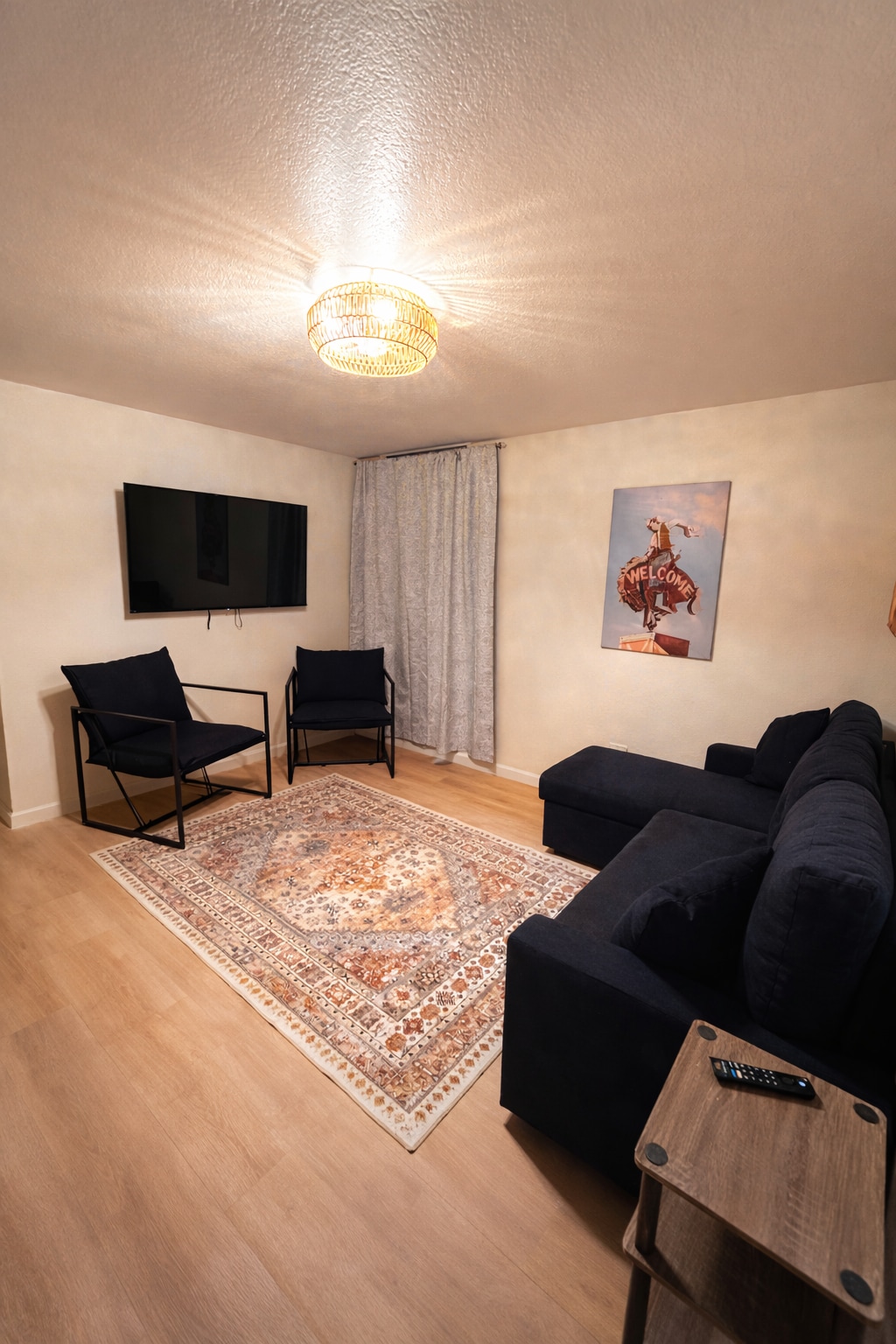 Located 1 block west of Holiday Park and a half mile from downtown Cheyenne. The park is beautiful with a lake and great to power walk around or to enjoy a leisurely stroll. My home is just 2 miles from Frontier Park and Cheyenne Frontier Days rodeo. Guests stay in a sunny and western style 1,200 sq. ft. apartment and is in the basement of my home. There is a separate entrance on the east side with secure gate entrance and door code. The apartment is not baby friendly, no crib provided.