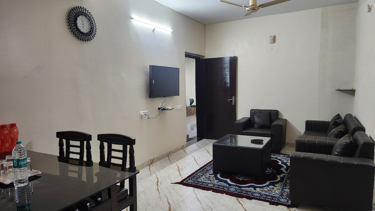 Welcome to our classy abode with newly furnished , two comfortable rooms, for a peaceful and enjoyable stay! It's more of a homestay, ask us for special homecooked food options additionally. For two persons , you get one room. If you have extra guests, add them as extra persons, and get second room. The locality is centrally located in the city. Overall, We are offering two large bedrooms with two washrooms, and an airy kitchen, gorgeous terrace overlooking lush green garden and trees.