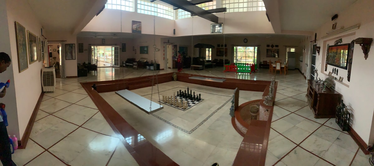 "Formula House" (FH) is an unique dwelling embodying the new design philosophy of "CIRCA" (Contemporary Indigenous Resilient Civilisational Architecture). It includes multiple green building principles (Solar PV, rain-water conservation, energy-efficient appliances etc.). The listing is for the 1st Floor. It provides a serene contemplative space that seamlessly blends ultra-modern luxury with timeless-heritage in terms of furniture, appliances, exhibits, and a curated Telugu & English library.