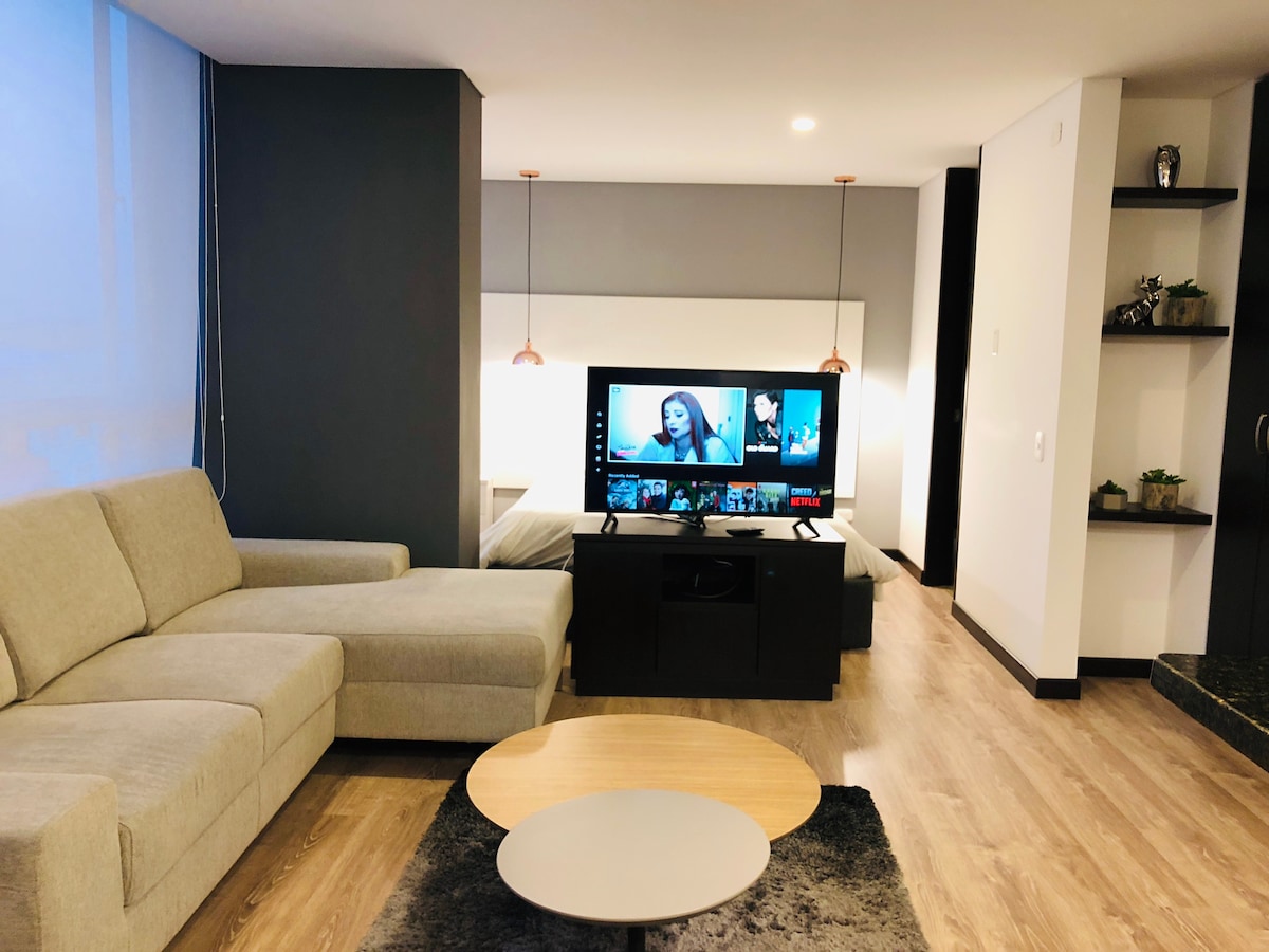 Totalmente privado e independiente: ¡Alojamiento entero, no compartes nada con nadie! ¡Perfecto para parejas que buscan una noche cómoda! Disfruta de un espacio privado, cómodo. Por favor lee atentamente antes de reservar: Ideal para descansar, desconectarse. -Ambiente moderno -Cama y TV -Baño privado (Toallas, bodysoap, pasta de dientes, papel higienico etc) -Ubicación privilegiada -La cocina NO está habilitada para estadías de un solo día Parqueadero en visitantes. 6to piso NO ASCENSOR