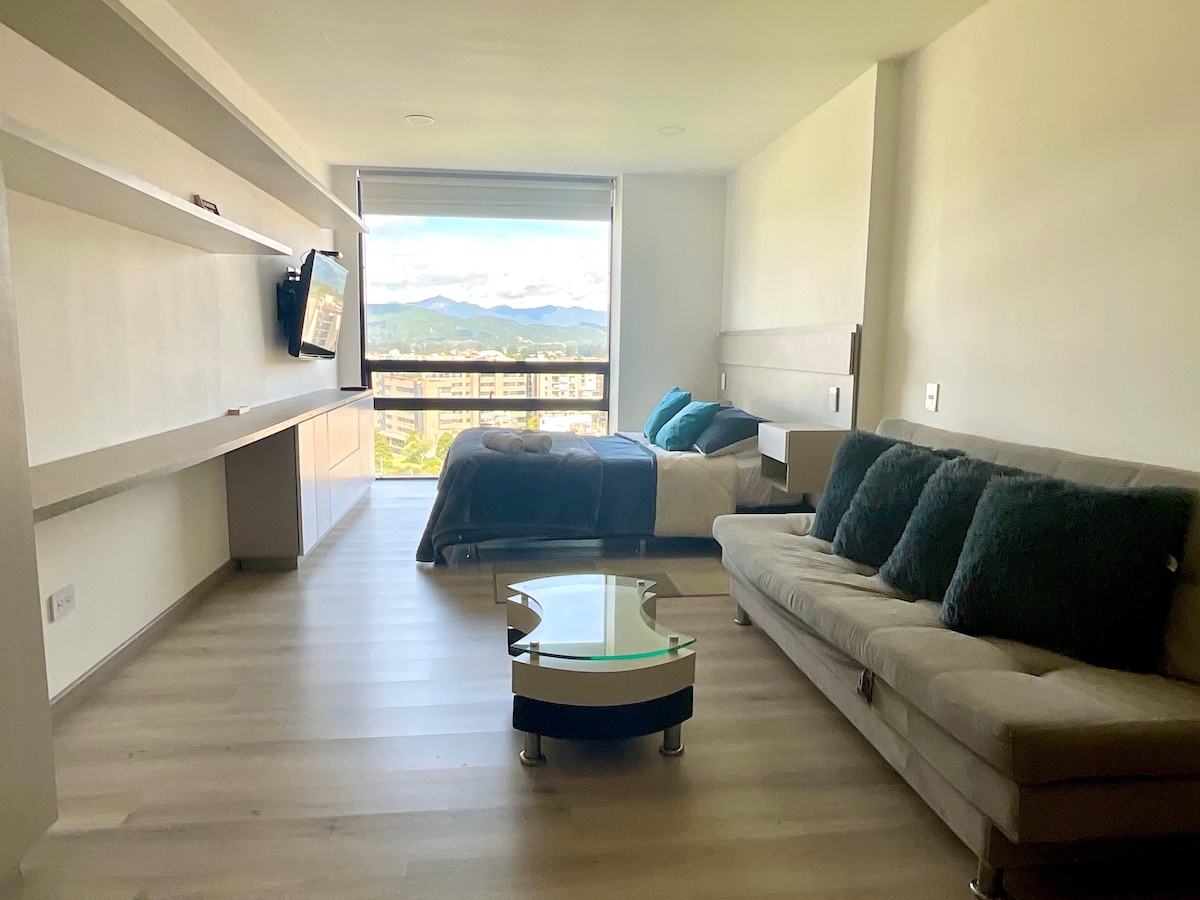 Este apartaestudio es un verdadero oasis de confort y estilo. Al entrar, serás recibido por un espacio luminoso y moderno, con una decoración elegante que invita a relajarse. La cocina está equipada con todo lo necesario para preparar deliciosas comidas, y el acogedor salón cuenta con un cómodo sofá ideal para disfrutar de una pelicula. ¡Un lugar perfecto para disfrutar. Se encuentra en un piso 11 con la mejor vista hacia la ciudad de chia y el cerro de la valvanera. Excelentes zonas sociales