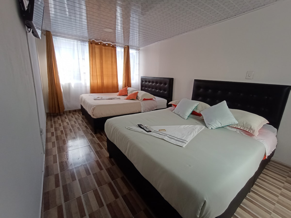 Descubre el confort en nuestra espaciosa habitación en Bogotá, equipada con una acogedora cama doble, una cama sencilla y un cómodo sofá cama. El diseño moderno y funcional se combina con detalles acogedores, ofreciendo un espacio versátil ideal para familias o grupos. Disfruta de una estancia placentera con todas las comodidades que necesitas.