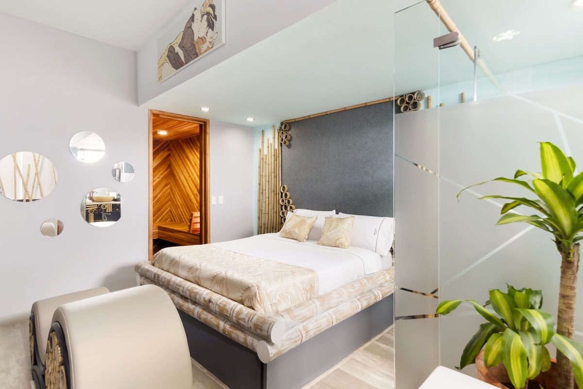 Enjoy a luxurious experience at our exclusive boutique hotel, located in one of the best areas of Bogotá. As a guest, you will have exclusive access to the Mitho Wellness Club, where you can enjoy the gym, yoga classes, wet areas, and more. The location offers a wide variety of nearby restaurants and shopping centers. Ideal for business trips, couples, and tourists seeking comfort and an exclusive environment.