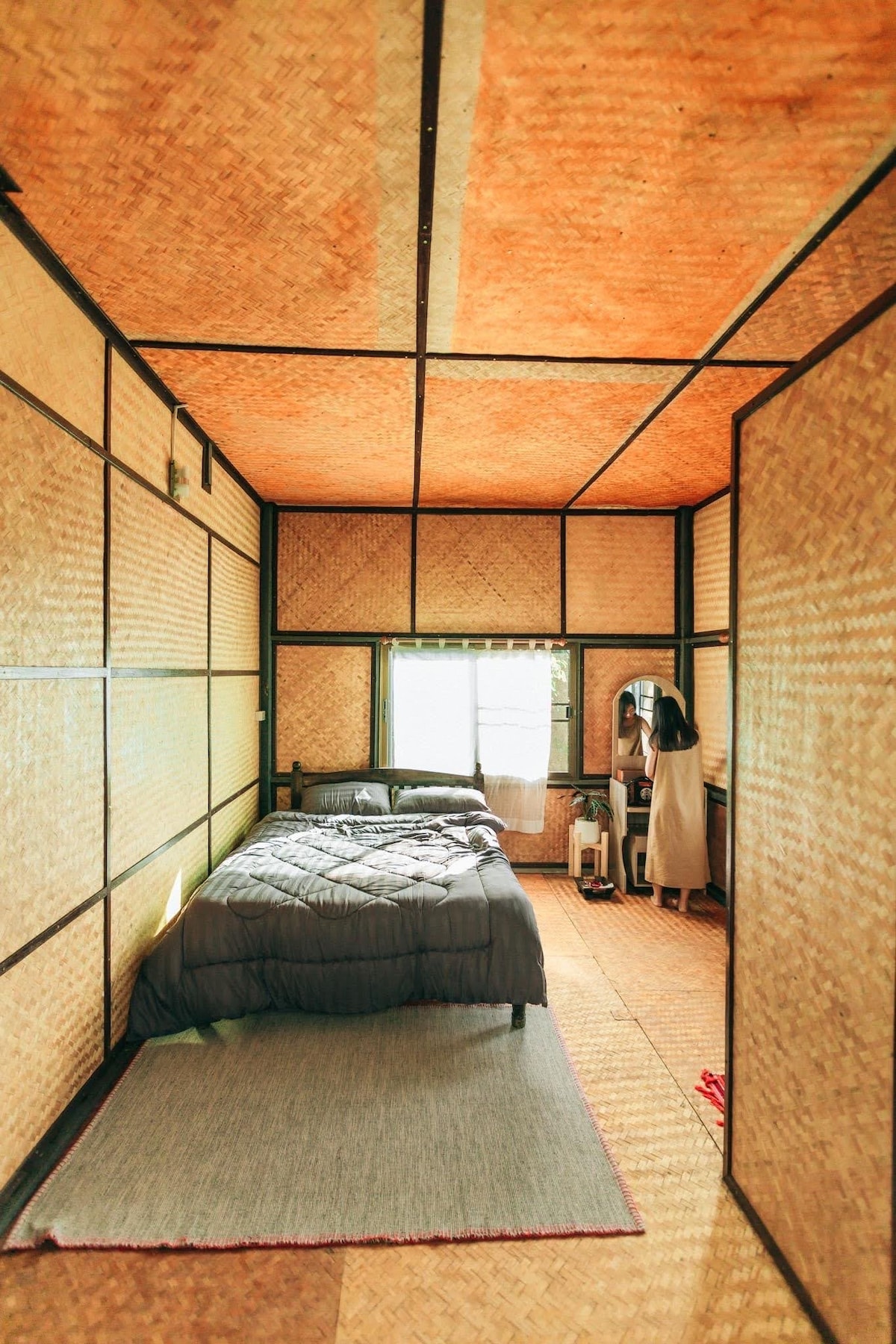 Enjoy the sounds of nature, the company of the animals, the changing colors of the sunrise and sunset. This room is a two floors cabin built by old teak wood and natural bamboo material. It comes with it own private garden, semi-outdoor shower with wooden barrel bathtub, private toilet and living room. It has the best view of our farm. With a balcony facing the spectacular Mountain View and over look the whole farm from every angle. It’s the best option for couples and families.