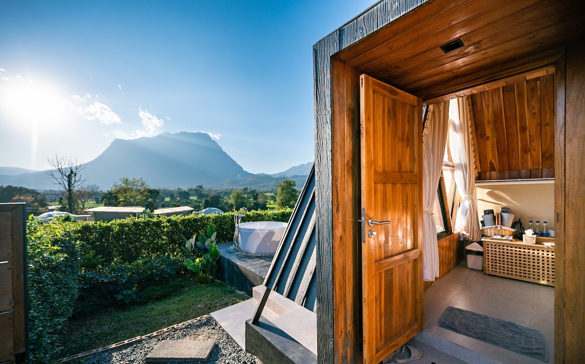 Chom View Cabins are two private cabins located amidst a century old tea plantation overlooking the town of Chiang Dao. At 1,312 meters above sea level, it's always breezy cool up. Some mornings you'll be sitting among clouds in this hill dubbed as DoiMek (cloudy hill).