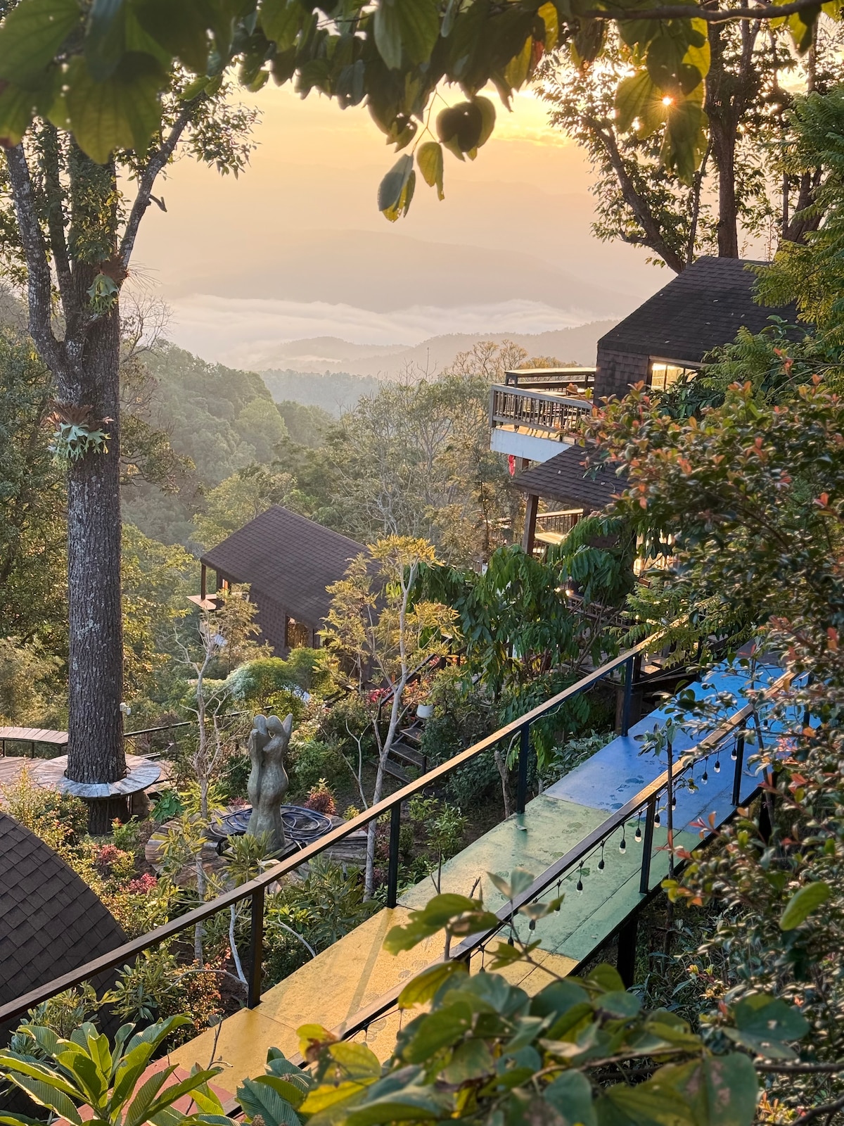 Perched above the orchard, this bamboo loft opens to a breathtaking view of Doi Nang — Chiang Dao’s sacred mountain. It’s a peaceful, meditative space designed for stillness and simplicity. Wake up to birdsong, sip tea on the balcony, or watch clouds drift across the peaks. With natural woven walls and soft light, the room feels like a mountain temple — perfect for quiet reflection, writing, or reconnecting with yourself.
