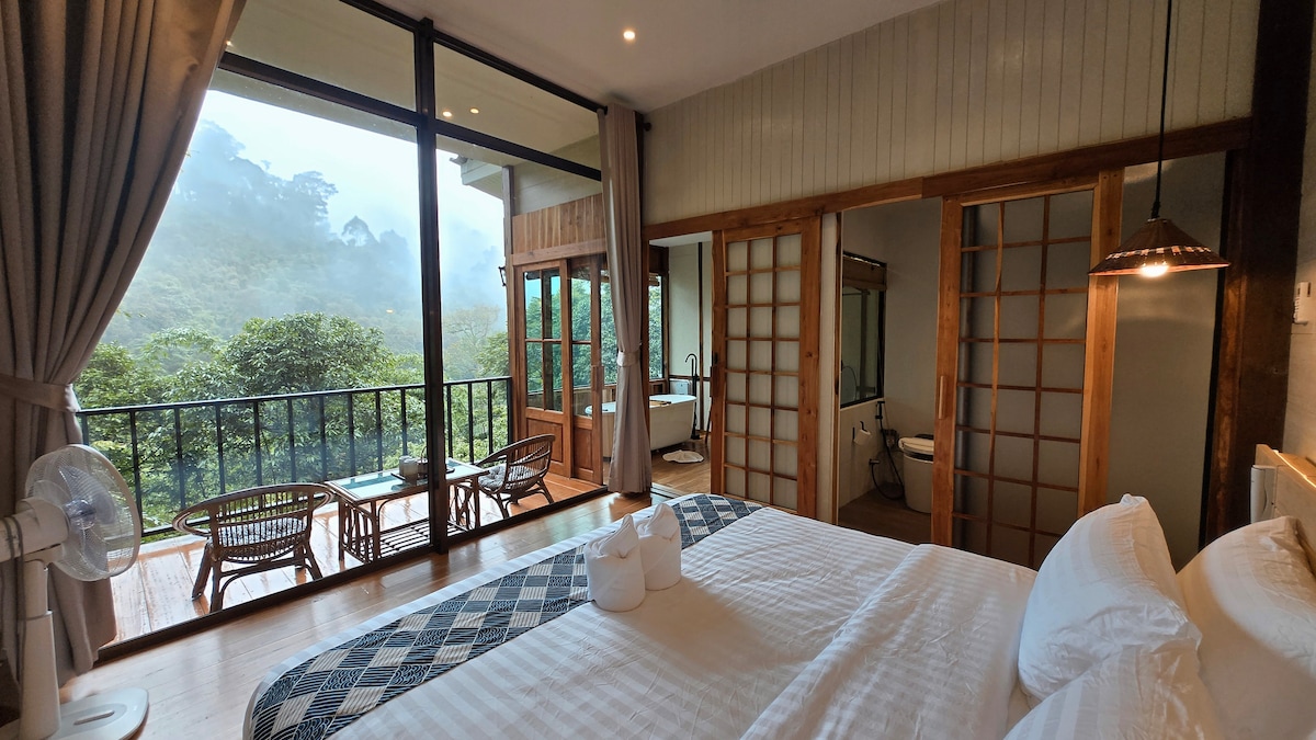 Perfect destination for both short and extended stays. Situated in the scenic high mountains of Chiang Mai, just a 1.5-hour drive from the airport, our resort offers a unique experience of sleeping above the clouds, surrounded by majestic hundred-year-old trees. Our facilities seamlessly blend modern and traditional amenities, providing Wi-Fi and spacious work desks for your convenience. ❣️Restaurants at property (Thai,Local, Inter) ❣️Thai boxing and Cooking class ❣️Thai massage *dm for more room