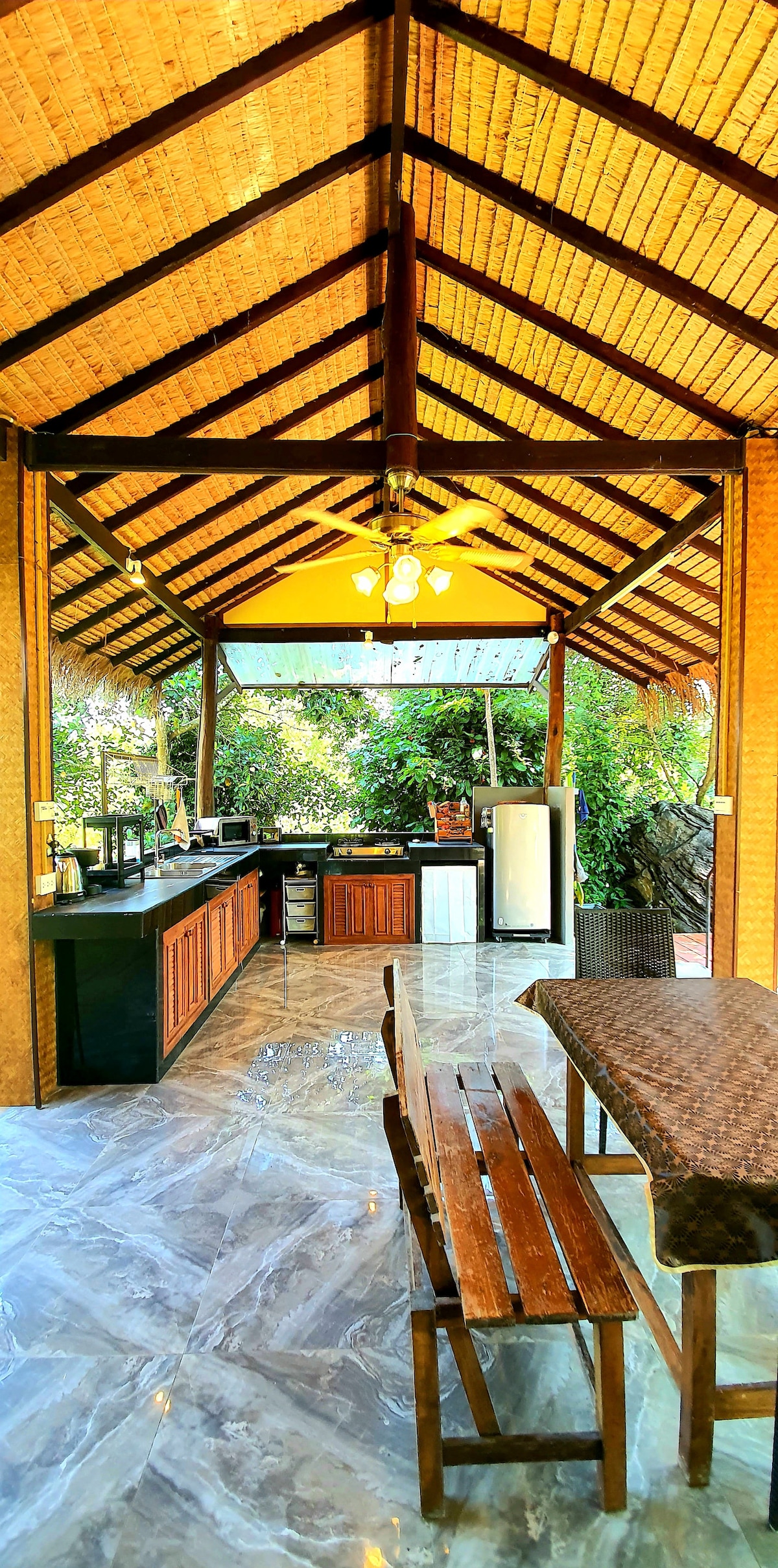 This bamboo hut is the first guest house at my farm, designed by myself. With a customized round window framing the whole rice field and mountain view. It has a private wooden bathtub, so you can have a warm bath in the chilly morning or evening here and enjoy the sunrise or sunset at the same time. There is basin next to the bathtub for you to brush your teeth and fresh up. On the other side of the house, it has a patio with hammock, for you to lay on and take a nap.