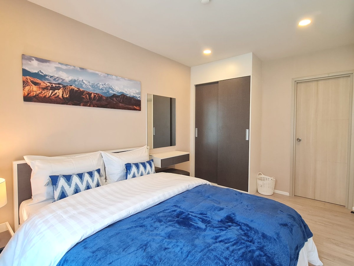 This spacious two-bedroom, two-bathroom apartment offers stunning views of Suthep Mountain, a rooftop pool, and a gym with panoramic city views. It's perfect for a family of four and conveniently located downtown near the Chiang Mai Night Bazaar. The price includes: - Netflix - 1,000 THB allowance for utilities - Flexible early check-in or late check-out (subject to availability) - Parking space - 24/7 doorman service