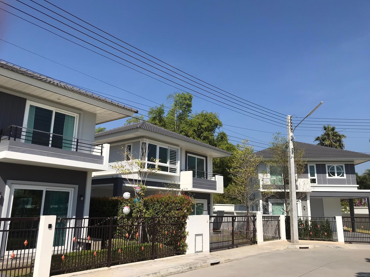 Our house is in an exclusive gated community located in the heart of Hang Dong. While it's a 20-30 minute drive to downtown Chiang Mai, it's conveniently located within minutes of Kad Farang Village, Panyaden School, SBS, Montessori and several other major international schools. The North Hill Golf Course is just across the main road, and several of Chiang Mai's top restaurants are within a five minute drive. We aim to provide every amenity you can imagine, anything you need just let us know.