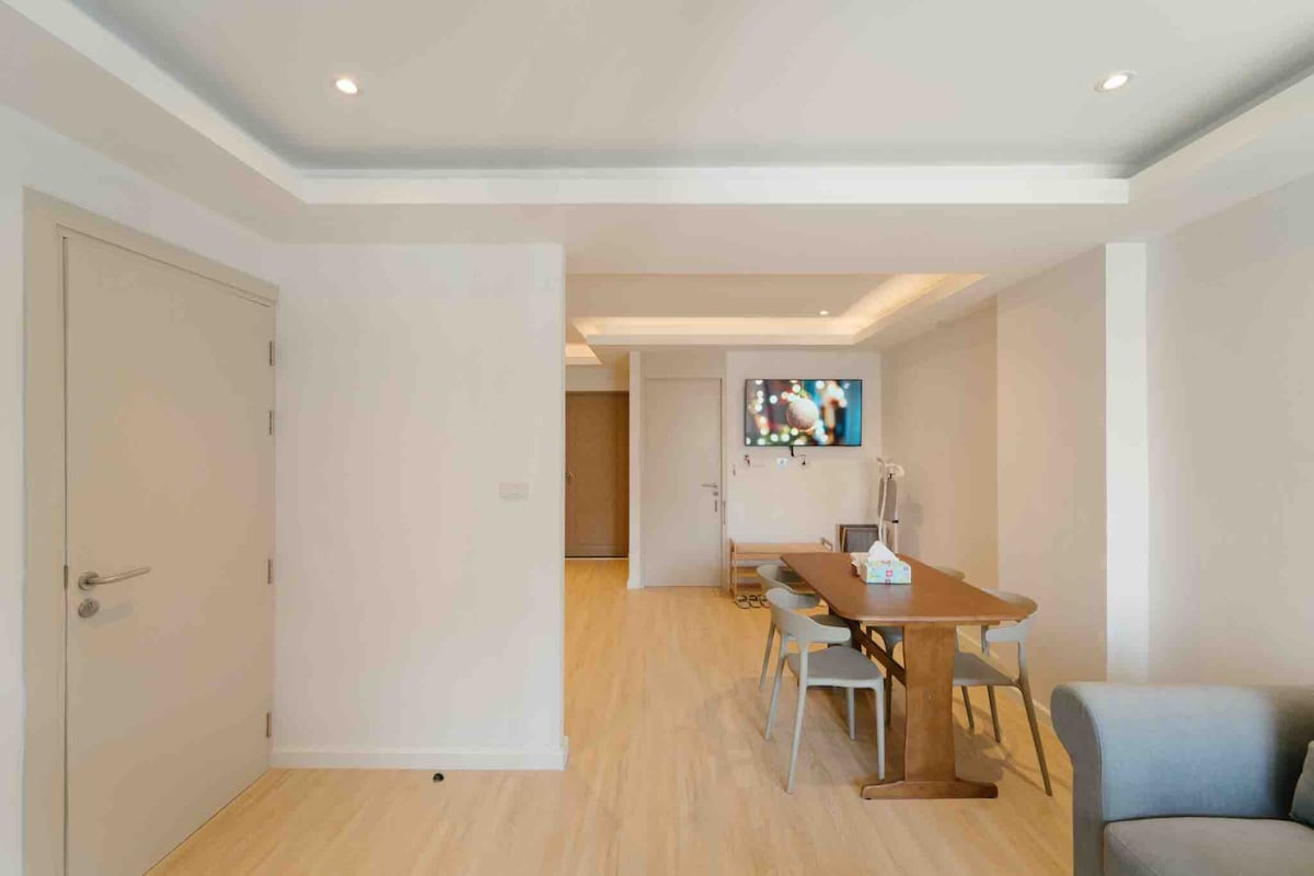 This stylish 2 bedrooms apartment on aside street in Nimman Road with high quality facilities. Relax in our comfortable living area. ★No elevator★ ★No parking lot★ Room Details : - 2 bedrooms with 2 Air-conditioners. - 1 Large living room and dinning area + smart TV + kitchen + Air purifier +Fan ★ - 1 bathtub ★ Fully furnished Room ★ Before booking, our accommodation is in *Night life area*. There are Chiang Mai famous bar nearby in walking distance. luggage storage point. 不过我有行李寄存处。🧳