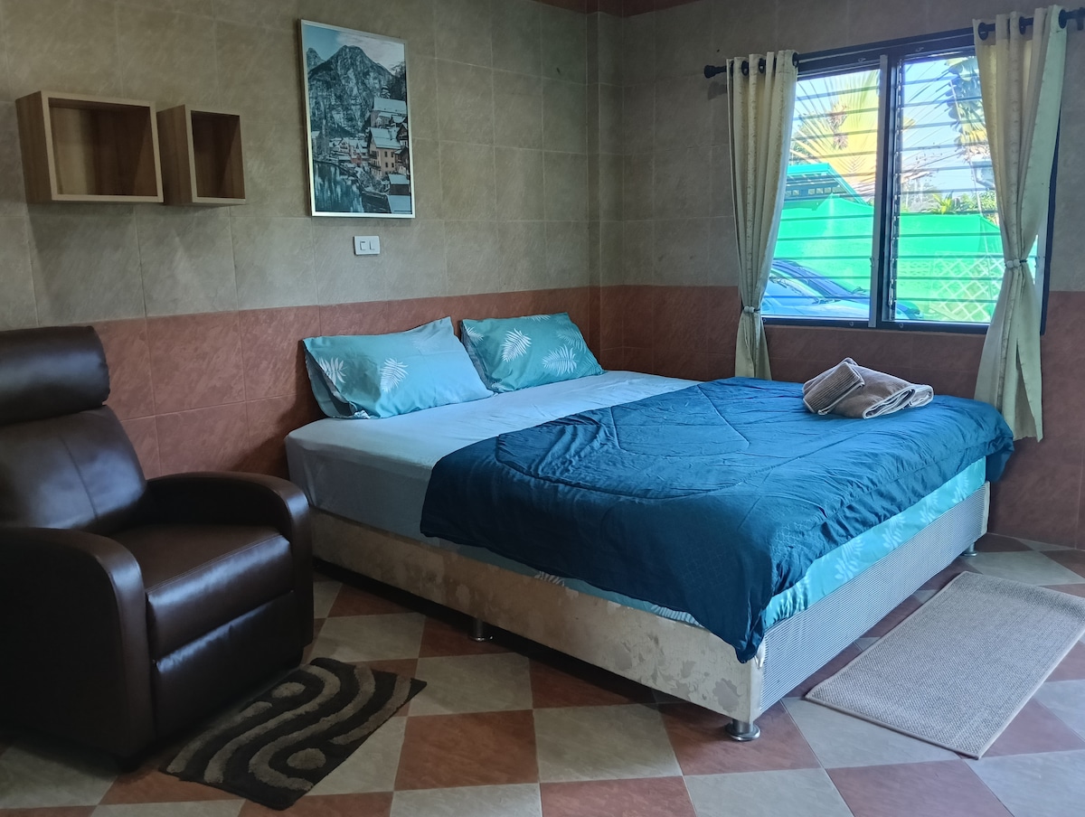 Relax with the whole family at this peaceful place to stay. Good size room with garden view. Quiet, far back from the main street. Convenient store, traditional food market are just around the corner. Eatery and coffee shop are just few step away. Going to Night Bazaar, center of town is within waking distance.