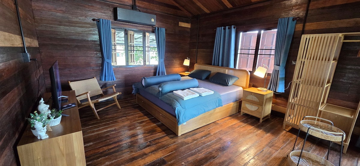 Relax with the whole family at this peaceful place to stay.a two-story-house for 5 people in the middle of go forest on our private mountain which is 10 mins from the white temple and singha park and only 5 km to the highest waterfall in Chiang Rai where you can trek and swim.the room has 60 sq.m. balcony and fire pit behind the house