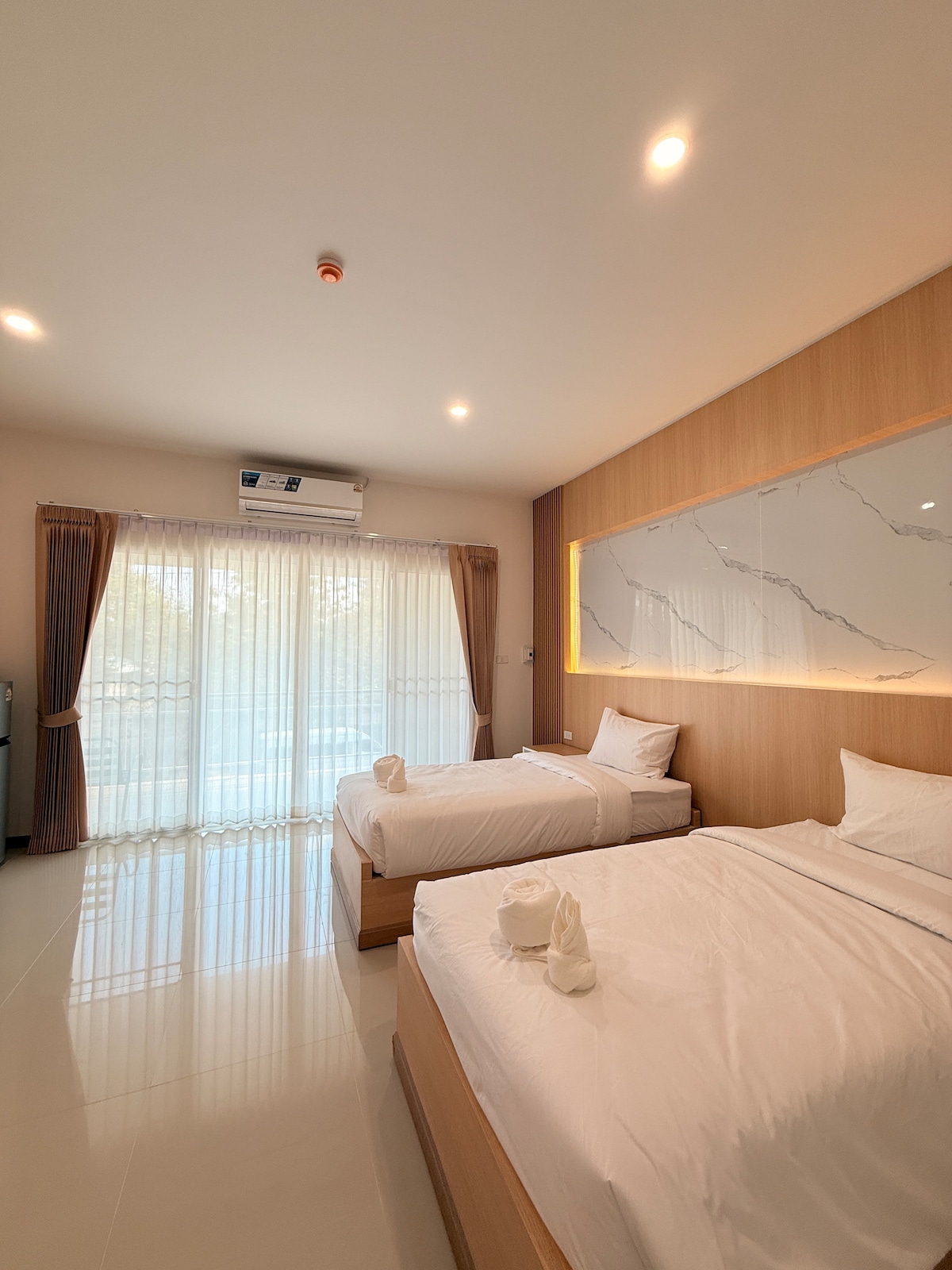 A room with balcony, fully furnished with comfortable bed, air conditioner, hair dryer, Kettle and coffee set in room, fridge, flat screen TV with True Vision, Hi-speed WiFi in all areas, in-room safe, bathroom amenities, water heater shower and slippers.