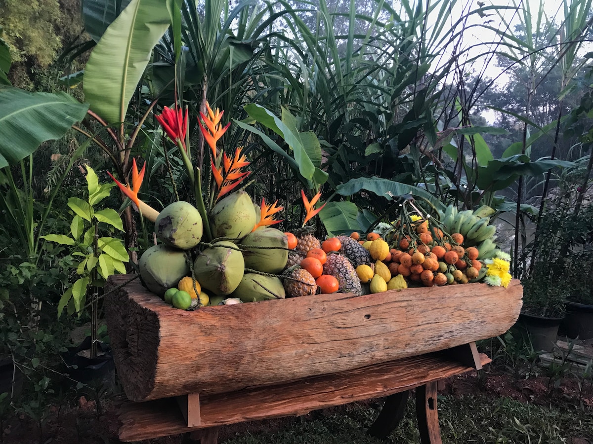 A peaceful retreat at charming Japanese-style house nestled in a teak forest, surrounded by a lemon farm . Refreshing, and so close to nature. Collected fresh eggs from the coop in the morning—so good to cook with! Seasonal veggies straight from the farm made every meal feel special. View of Doi Pha chang. Absolutely stunning, especially at sunrise. Rai Anantachin Farm stay, a perfect place to unplug, breathe fresh air, enjoy life's simple joys for anyone who loves nature & slow living