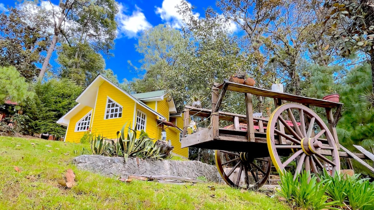 Relax with the whole family at this peaceful place to stay. Peaceful cabin on the mountains of San Cristobal de las Casas. Enjoy your rustic cottage surrounded by nature. Two terraces one with a fire pit. One large room with a king size bed and two tween beds and a pull out sofa. One small bathroom. Full kitchen.