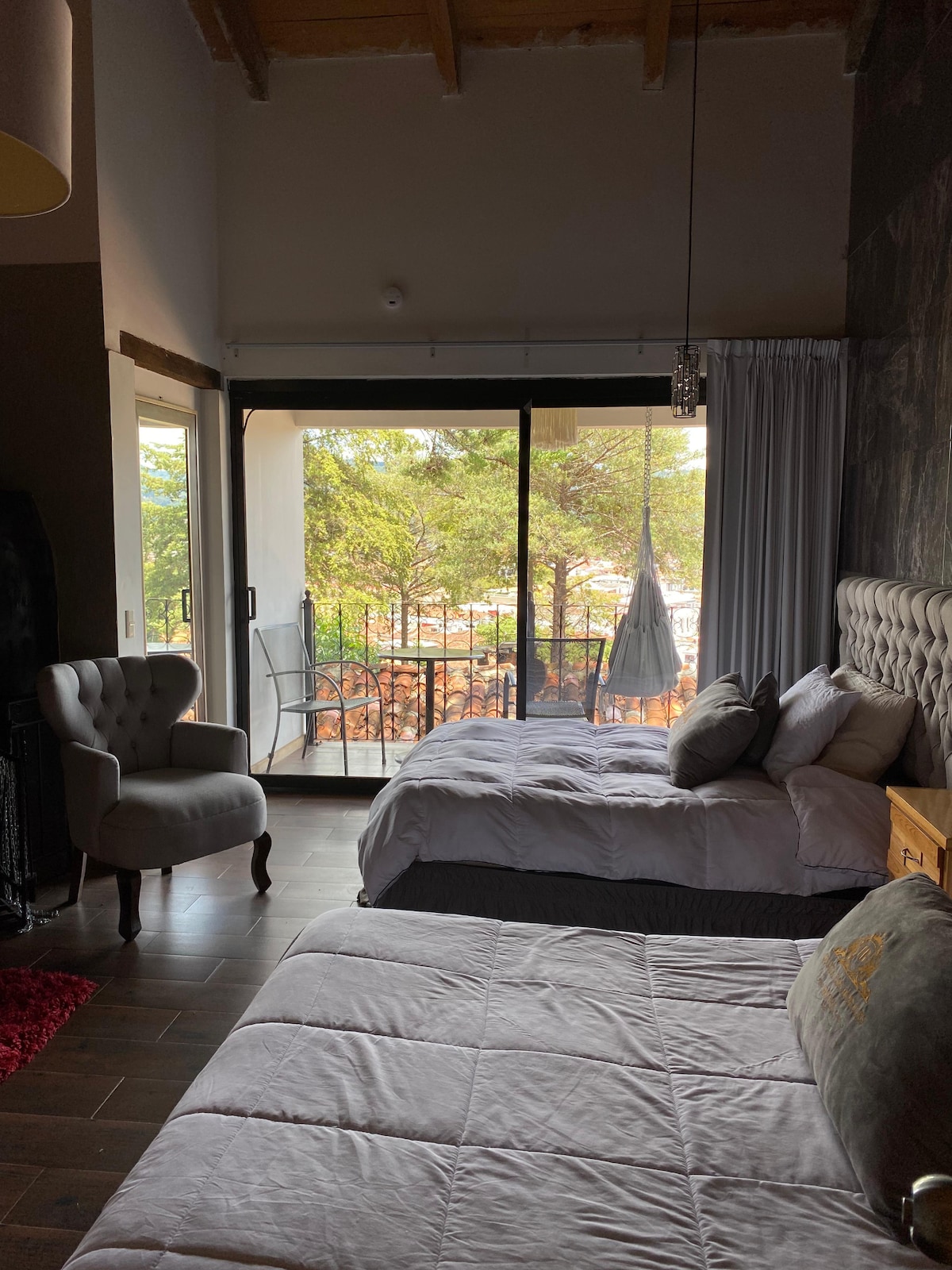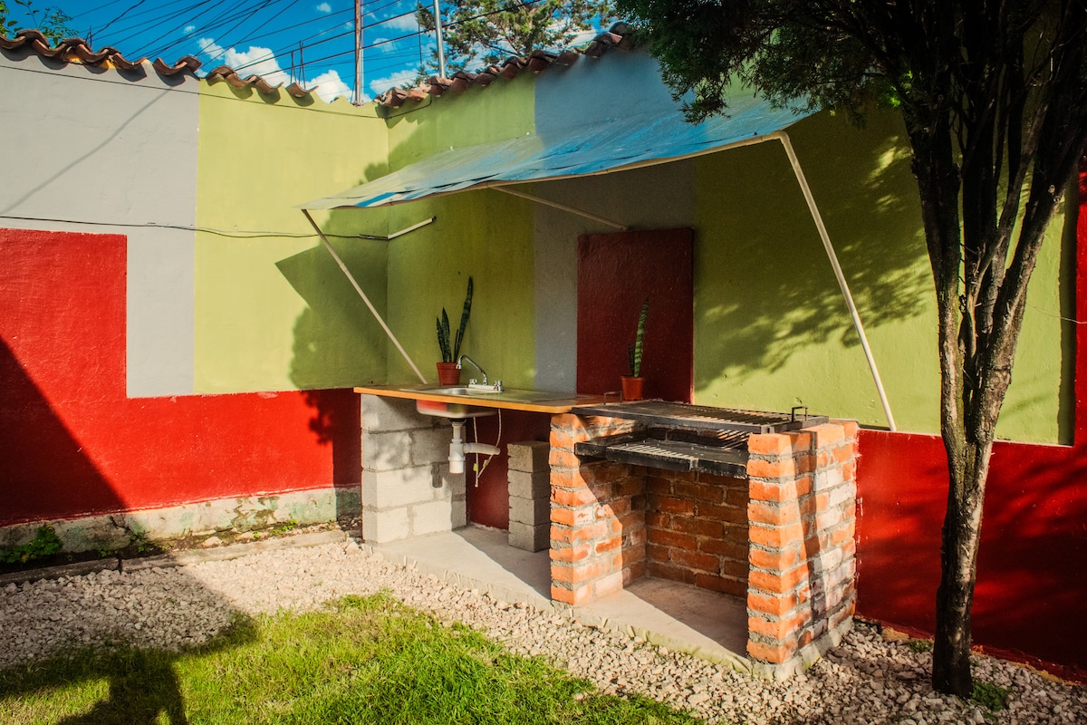 The perfect mix of down town confort and in house entertaiment for your friends or family! From watching the sunset from the hammocks on the tree house, enjoying a bonfire in the yard to laying back after a day trip with Netflix and take out, in front of the fireplace. Plus, amenities like a spacious and equipped kitchen, yard games and even a michelada station. In the heart of town! Only a few steps from the artisanal market, museums, cafés, convenience stores. 5 blocks from the central plaza.