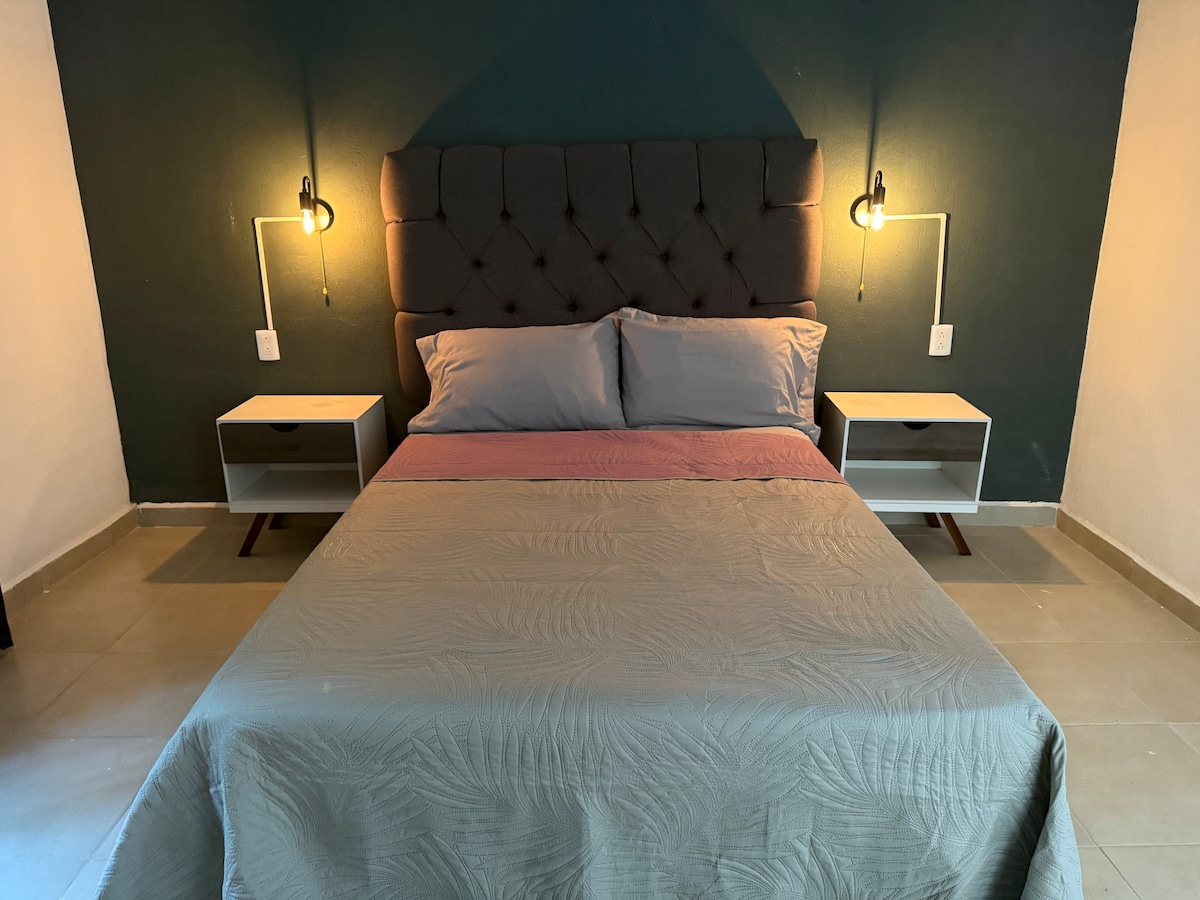 Disfruta de la sencillez de este alojamiento tranquilo y céntrico Lee bien todos los pie de las fotos del alojamiento La habitación es la climatizada, se cuenta con área de comedor-cocina en la misma pieza y se ventila con ventilador. La entrada se hace por el garage que está disponible para tu seguridad Se cuenta con una cama matrimonial, sofá cama, hay costo por persona adicional a partir del 3ro. Se consideran niños a los menores de 10 años No se permite fumar dentro del apartamento