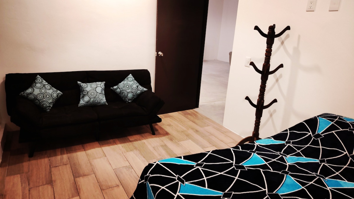 Ubicado en el corazón de Tuxtla Gutiérrez. Cerca de todo: Parque Central y un parque para caminar a 2 calles. Un espacio acogedor, limpio y cómodo. Tiene todo lo que necesitas para disfrutar tu viaje. Sueño reparador asegurado: persianas que impiden el paso de luz, cama y almohadas cómodas. Siéntete como en casa: relájate en el sofá cama mientras ves tus series o películas preferidas. Cocina moderna y lavandería equipada para que tu estancia sea perfecta. Estoy segura de que te encantará
