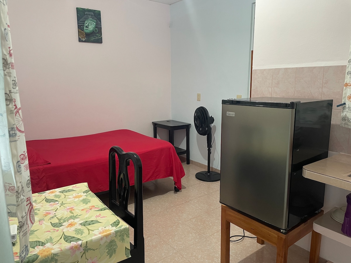 Departamento nuevo con acceso independiente, cocina completa, sala, recámara con baño completo, escritorio, clóset, WIFI fibra óptica velocidad de hasta 30 Mbps, limpieza un día a la semana en estancias largas. A tres cuadras del parque central y dos cuadras de la central camionera ADO