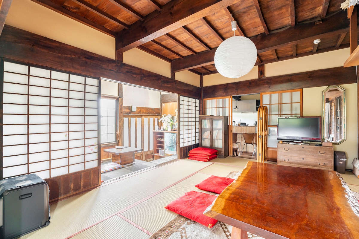 Imagine a slower, simpler, more serene place and time. A place set between emerald green rice fields and an endless sandy beach. An unhurried time of the past, when family and friends sat, talked, ate and drank on traditional tatami, or under the stars, with the faint sound of waves crashing rhythmically in the background. This is what you’ll find at Grandma’s House, a tastefully preserved mid-twentieth century cottage five minutes on foot from Toyoumi Beach in Kujukuri town.