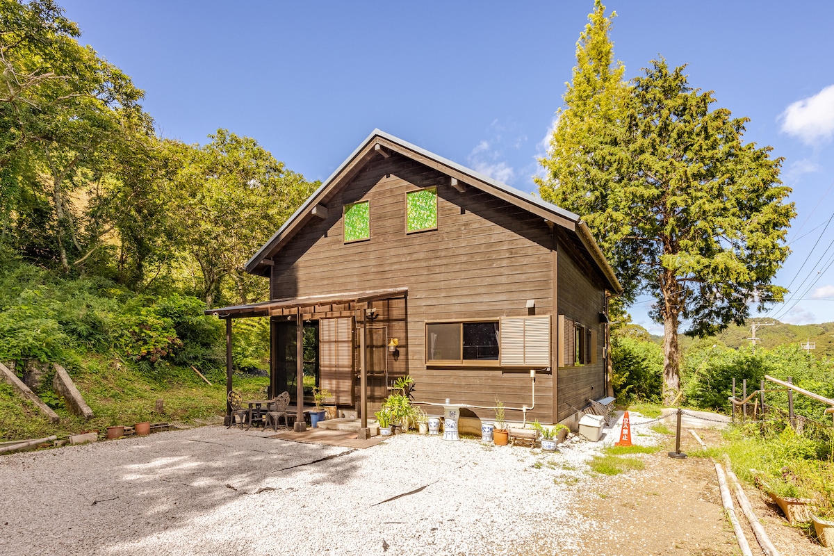 Welcome to “THE HILL Katsuura” – a serene log house , nestled in the forest with stunning panoramic views from a hilltop terrace. This spacious, single-story home is perfect for families, seniors, and guests with pets. Enjoy a covered BBQ, bonfire nights under the stars, or movies by the wood stove. With 3 bedrooms, full amenities, kid-friendly features, and barrier-free options, it’s the ideal blend of comfort, nature, and style for your next coastal escape.
