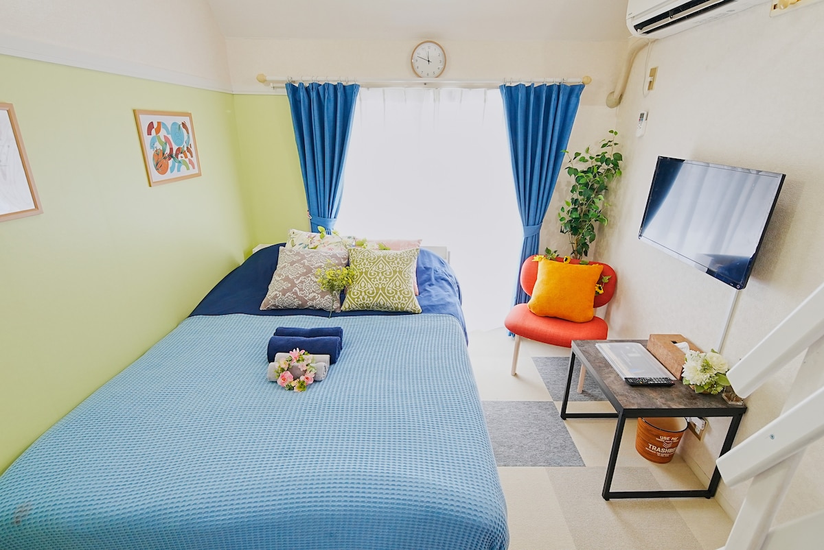 公寓位于东京都台东区。台东区是东京最古老的市区之一,充满江户风情。这里有三个著名的地方——上野、浅草和秋叶原。靠近东京大学,以上野公园和东京国立博物馆为中心构成文化圈,有浓厚的人文气息。 公寓位于东京交通最方便的JR山手线上,车站为山手线莺谷站 。从公寓步行到车站9分钟。另可从地铁日比谷线入谷站步行为7分钟。从公寓步行至上野公园、东京国际博物馆和日暮里站17分钟。 乘坐JR线: 直达 上野站2mins 直达 新宿 24mins 直达 银座 18mins 直达 秋叶原 20mins 转乘一站可达: 成天空港 53mins 羽田空港 47mins 浅草 22mins 迪斯尼乐园 41mins 102房间为一个1.5米宽双人床(注意只有一张双人床,目前网站显示有错误) NOTICE: There is only one Double bed in this room. 2个收纳空间 独立卫生间带淋浴 独立小厨房 宽带 洗衣机 冰箱 对讲机 无线联动烟雾报警器 药箱 室内晾衣杆、衣架 优质床品