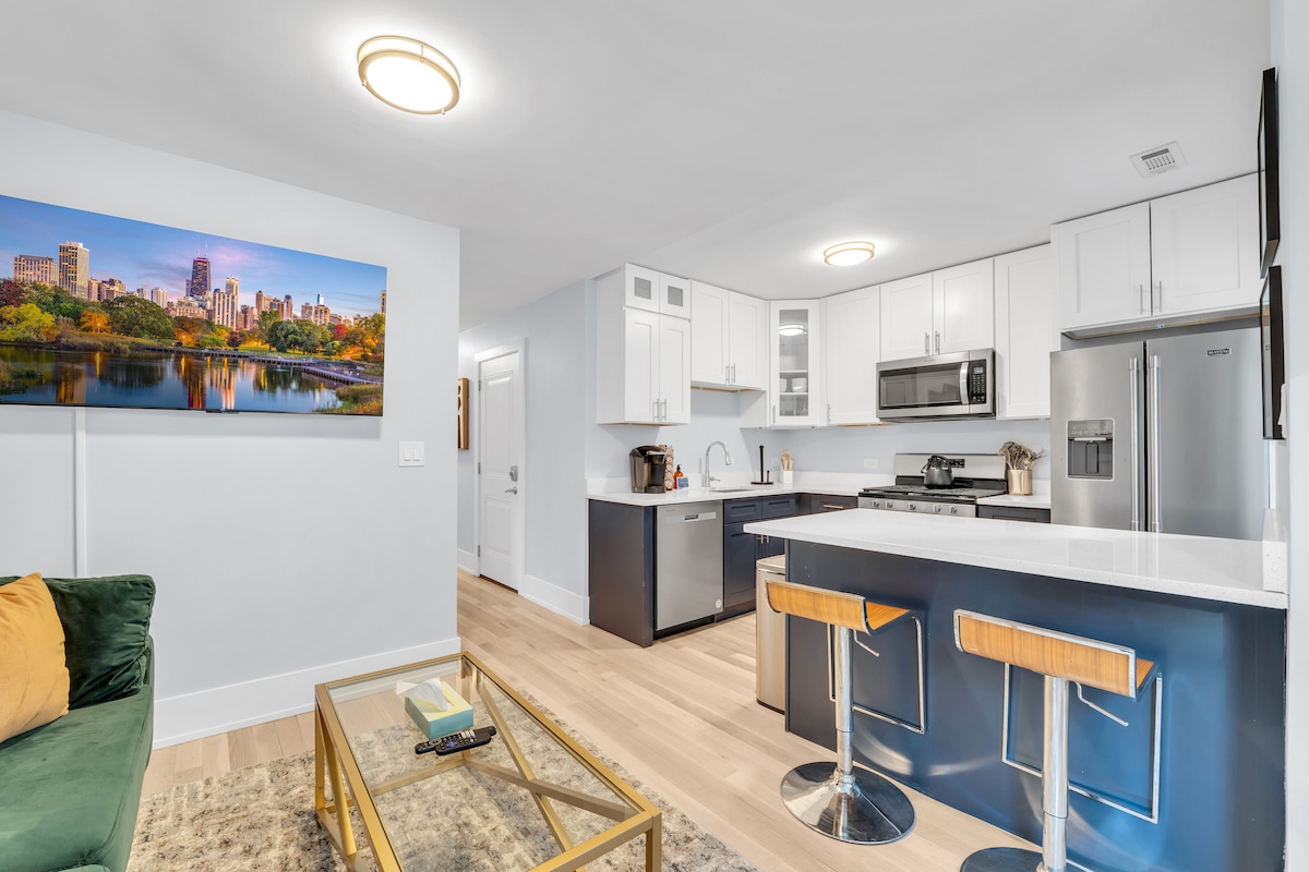 Welcome to beautiful Roscoe Village! Come relax and enjoy a gorgeous loft-like condo that has a huge sun-drenched living room and opens up right to the kitchen. Enjoy cooking on your own in the spacious kitchen and rest easily at night in a spacious king bed in the main bedroom. We love and welcome pets - so no need to leave your fur baby at home. Uber to Wicker Park and Logan Square. You’ll have your own private entrance with a lock box to get into the condo. We look forward to hosting you!