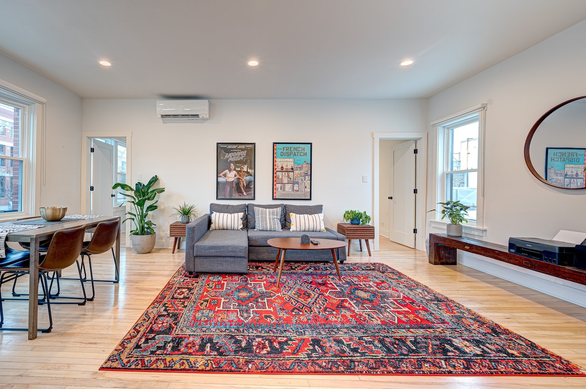 Welcome to our charming retreat in the historic Old Town Triangle/Lincoln Park district of Chicago. This conveniently located 3-bedroom apt, including office space, is nestled in the heart of a safe residential neighborhood with a 5-min walk to Brown Line and 10-min to Red Line. Within a 20-min walk, you'll find yourself at Lincoln Park Zoo, Beach, Second City, and Wells Street, immersing yourself in the vibrance of the old town. Book now to experience the best of Chicago. Parking+EV charging.