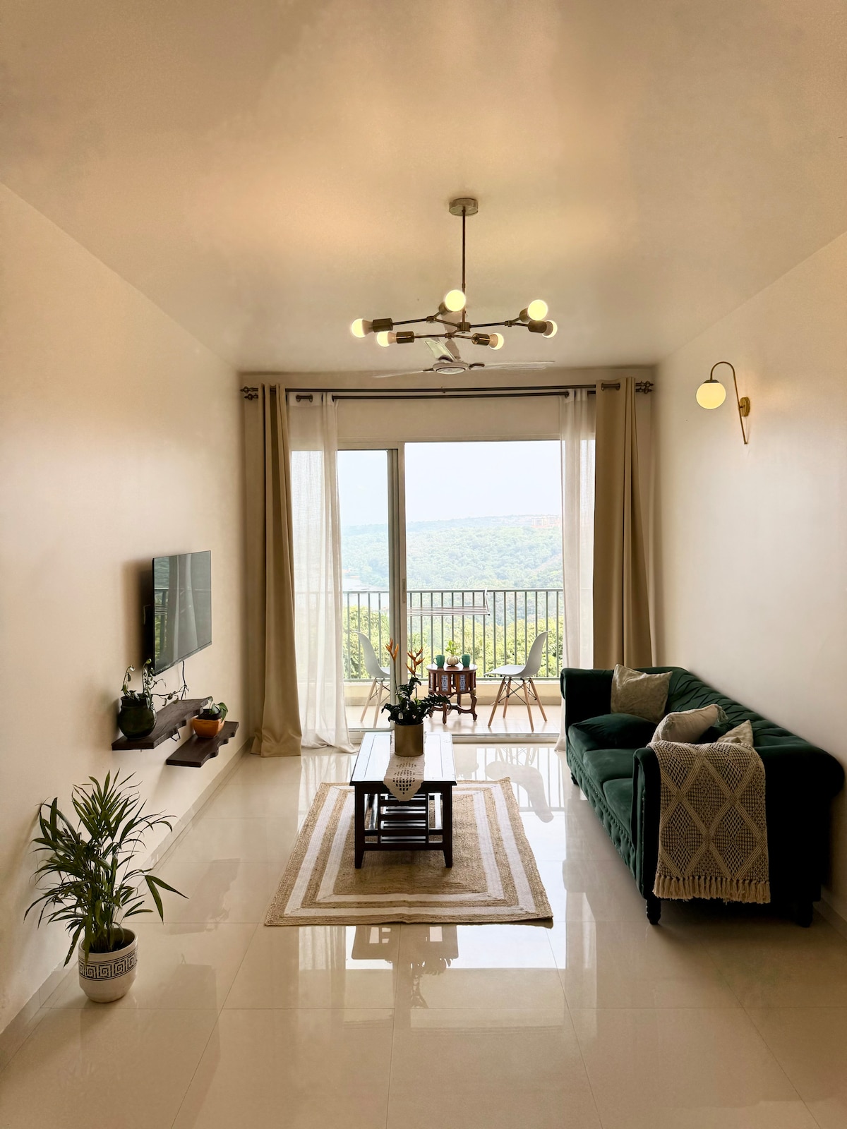New beautifully furnished luxury apartment with all modern amenities at the Tata Rio De Goa in Dabolim. Centrally located between North & South Goa, it is 10 minutes away from Dabolim International Airport and has close access to the beaches in South Goa. The bedrooms and living room have a delightful view of the swimming pool and garden area. Rio De Goa has a well equipped modern gym, swimming pool, roof top infinity pool, steam & sauna, TT table, Carrom Board, Squash Court etc