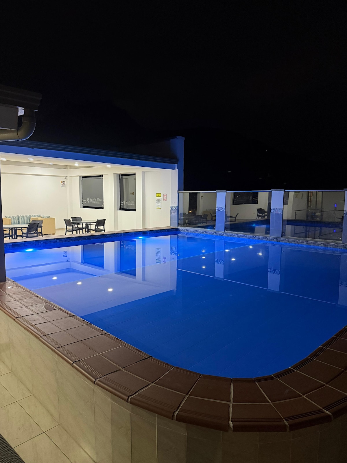 Este alojamiento único tiene todo lo que necesitas para que disfrutes tu estadía en familia, pareja o como lugar de trabajo remoto. Ubicado en el Centro Comercial San Gil Plaza con acceso directo a salas de cine, juegos infantiles, restaurantes, supermercado, farmacia, salones de belleza. Estamos ubicados a tan sólo 300 mt del Terminal de transportes y cuenta con parqueadero público de pago. La terraza cuenta con piscina panorámica, sauna y baño turco disponibles bajo reserva .