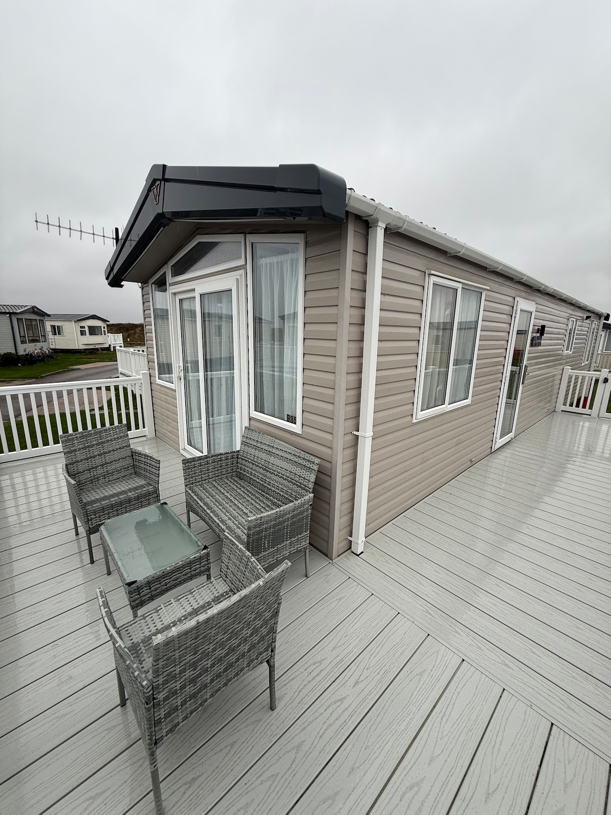 You’ll treasure your time at this memorable place. 3 bedroom caravan on 5 star holiday park, Seal Bay Resort. . Perfectly located, Very close to the entertainment, complex and beach. Wrap around veranda with front opening doors and lovely Sea view. WiFi, USB plugs, Smart tv in lounge and standard tv in master bedroom. Private parking space. Gas central heating. Toilet en suite to master bedroom. This is a really lovely comfortable caravan with everything you need for a perfect holiday.