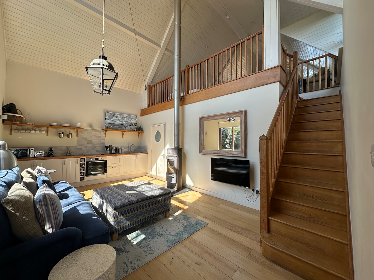 Take it easy at this unique and tranquil getaway. Comfortable lounge, dining area, fully equipped kitchen and shower room. Converted loft with kingsized mattress accessed by electric staircase, fully sprung kingsized sofa bed in lounge area. The deck includes BBQ, sunken seating area, fire pit, pontoon, and slipway for launching small boats, canoes, paddle boards and paddling. It's a great spot to watch visiting birds in Autumn/Winter. This is a pet free property. The creek is tidal.