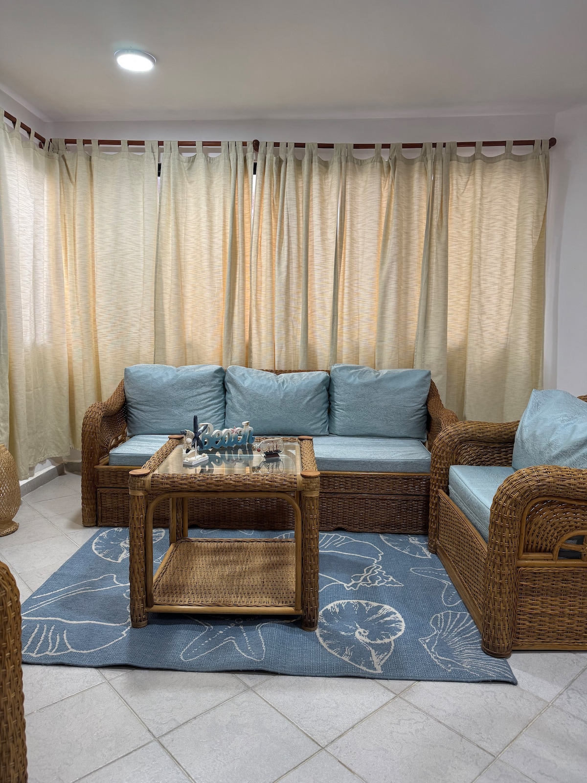 No Airbnb Fees: What You See Is What You Pay! 🌊 Relax with ocean views! Enjoy 2 bedrooms: one with a king-size bed and other with a bunk bed and a pullout single bed. The space features 2 bathrooms with hot water, an equipped kitchen, Wi-Fi, TV, and 3 air conditioners. The gated community includes a swimming pool, BBQ areas, direct beach access, and private parking. Safe and secure, with a power generator available on weekends and holidays. 📅 Book now and enjoy an unforgettable getaway! 💙