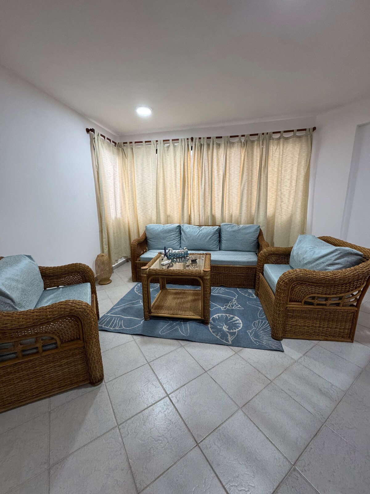 No Airbnb Fees: What You See Is What You Pay! 🌊 Relax with ocean views! Enjoy 2 bedrooms: one with a king-size bed and other with a bunk bed and a pullout single bed. The space features 2 bathrooms with hot water, an equipped kitchen, Wi-Fi, TV, and 3 air conditioners. The gated community includes a swimming pool, BBQ areas, direct beach access, and private parking. Safe and secure, with a power generator available on weekends and holidays. 📅 Book now and enjoy an unforgettable getaway! 💙