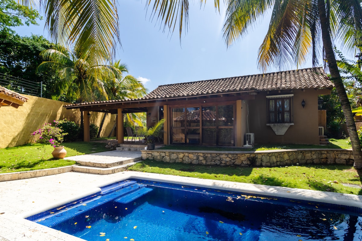 Villa privada en un complejo seguro con seguridad 24/7. Tiene jacuzzi con cascadas dentro de la villa como también acceso a las áreas sociales del complejo, piscina para adultos y niños,barbecue, cancha de volleyball, parque para niños, piscina etc. La villas está ubicada a 5 minutos de la playa y a 10 minutos para ir a los cayos. Contamos en la área , supermercados licorerias , casino, restaurantes , hospital, farmacias y todo lo necesario para disfrutar de la estadía.