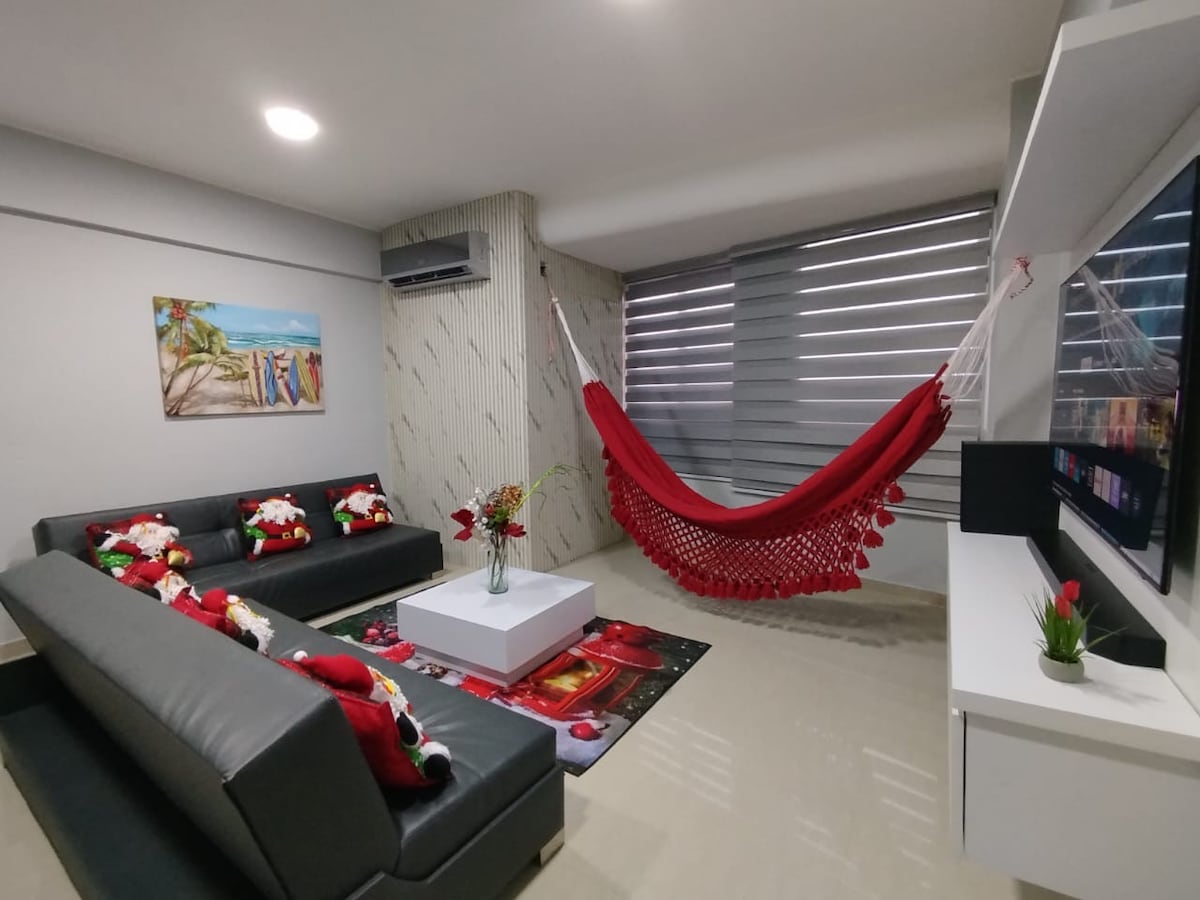 Relajase con toda su familia en este tranquilo apartamento, contamos con la comodidad necesaria, una hermosa vista y excelente ubicación. Acá encontraras 3 habitaciones, 2 baños full , cocina full equipada, lavadora-secadora, un comedor con una vista inigualable, piscina, jacuzzi, acceso a la playa , actividades en la arena como beach tennis , bolas criollas y volleyball. El conjunto cuenta con parrillera en el area de la piscina y la terraza.