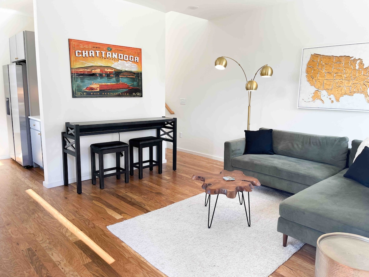 This airy-modern apartment is perfect for professionals, families, couples and individuals. - 5 min drive to Downtown - August App/Smartphone Access only - High-speed Internet - Fiber - Washer & Dryer - Youtube TV - Record unlimited Walking distance to: - Incline Railway - Hiking - Rock Climbing - River Walk - Running, Cycling - Buchanan's Barber Shop - Peace Strength Yoga - Goodman's Coffee - 1885 Restaurant - Tap House - Mr T's Pizza - Clumpies Ice Cream