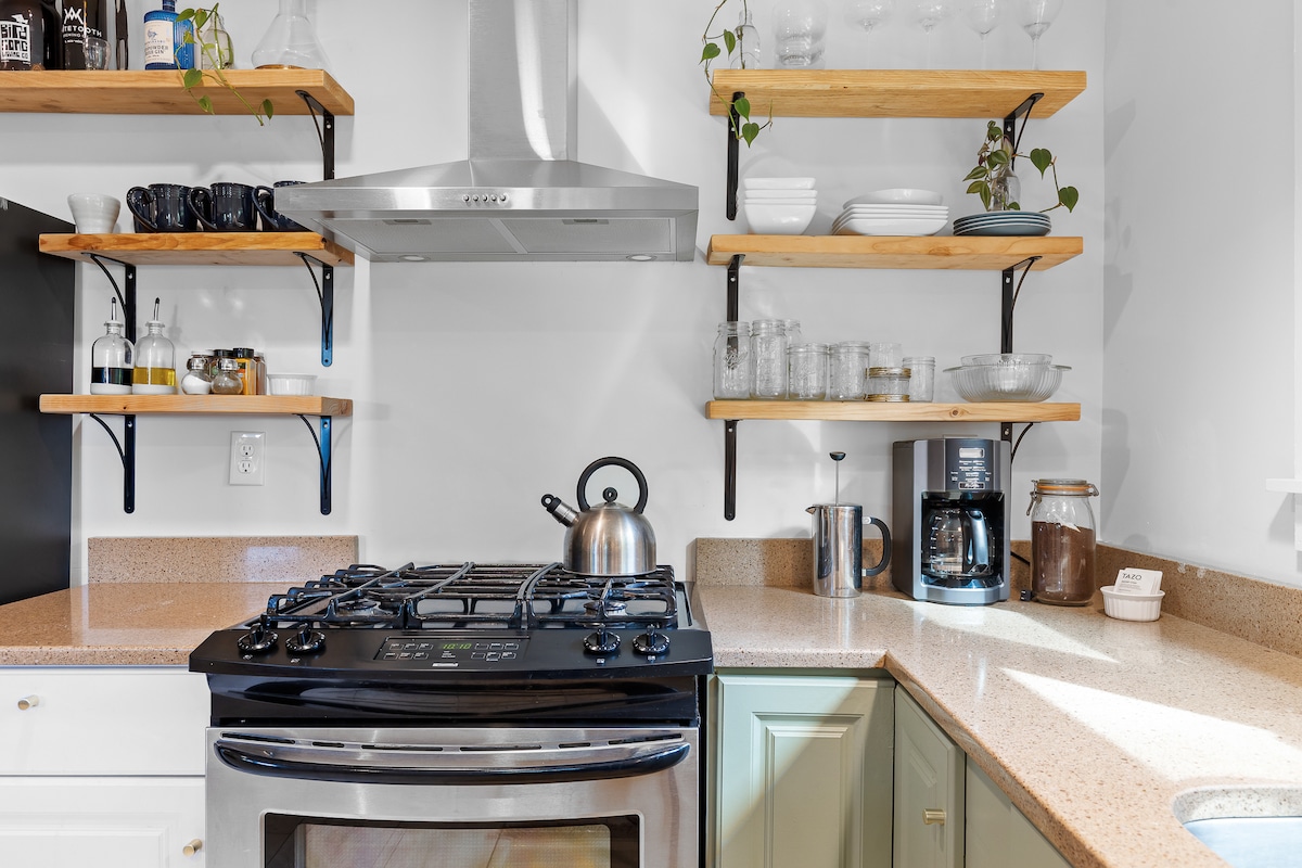 Southside and adjacent to the renowned Sculpture Fields at Montague Park, a 33-acre outdoor art museum! Close to everything, making it easy to plan your Chattanooga getaway! Queen bed en-suite with a desk, private laundry, kitchenette and garage to store your bikes, kayaks, etc. Great location right off of Main Street, and close to downtown, the river & convention center. -Smart TV -Coffee & Sugar -Fridge -Air Fryer -Microwave -Dishes -Blackout Curtains -Ceiling Fan - Early/Late Check-In Option