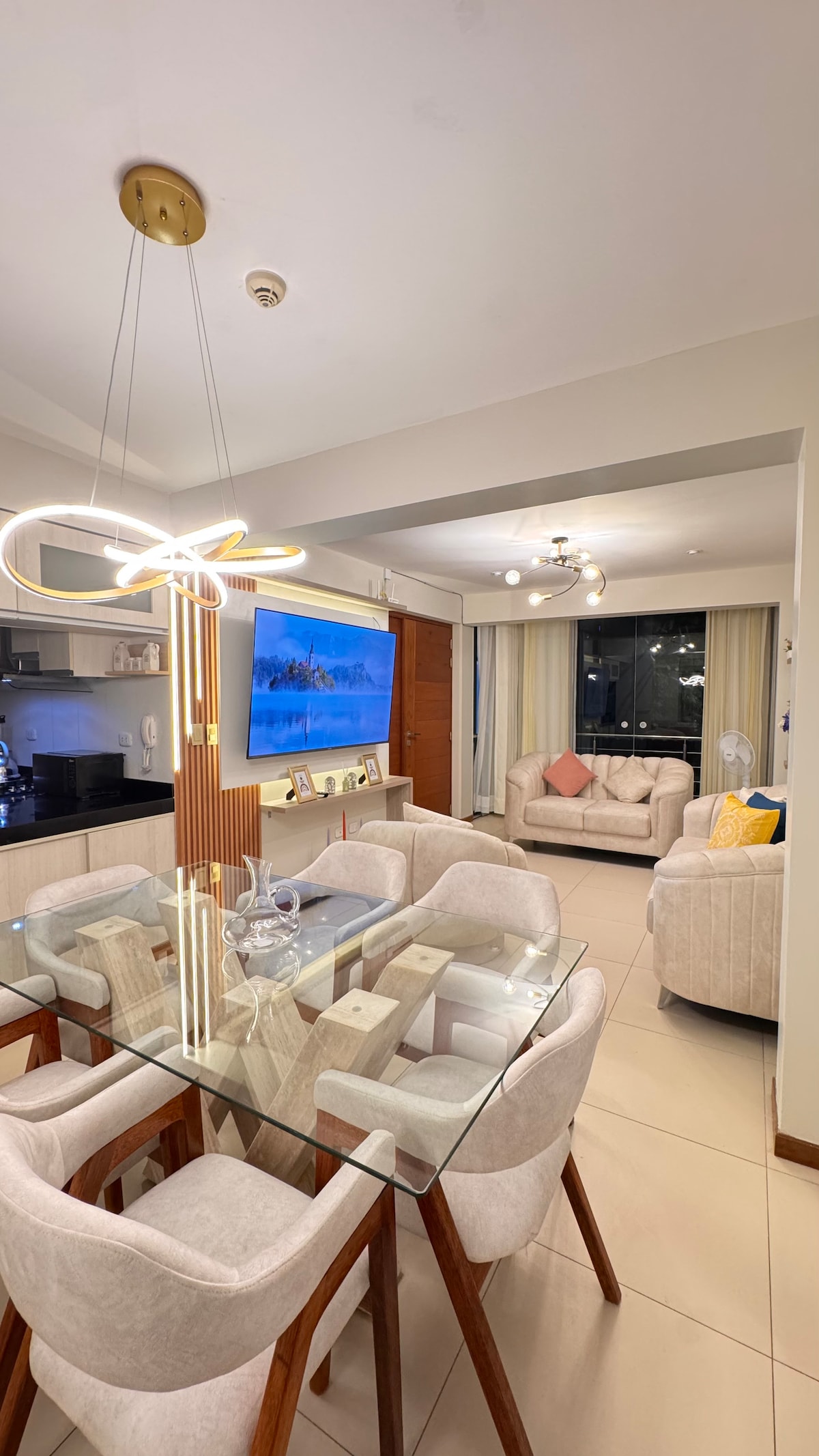 Disfruta de este moderno departamento de estreno en la Residencial Jockey, ideal para familias o grupos. Su ubicación estratégica te pone frente a un minimarket, con un mercado local en la esquina, transporte público cercano y a solo 5 min del aeropuerto. Cuenta con Wi-Fi, Smart TV con Netflix, cocina equipada, lavandería y área de juegos para niños. ✨ Cómodo, práctico y perfecto para tu visita a Chiclayo.