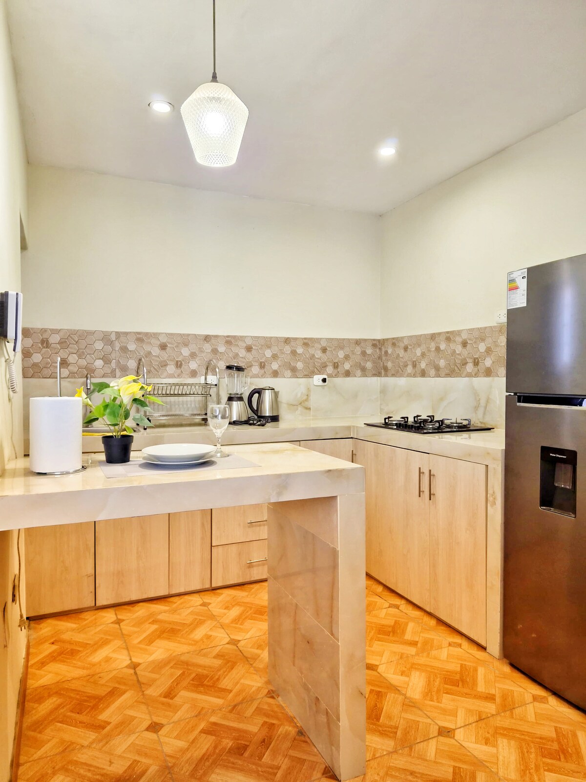 Alameda House 🏡 Es un departamento de estreno con finos acabados, ideal para grupo de viajeros, parejas, viajes de negocios y familias que desean pasar una estadía tranquila, en un lugar moderno muy acogedor con todas las comodidades a su alcance. ✅ Contamos con una ubicación súper céntrica. ✅ El edificio residencial cuenta con vigilancia 24/7 ✅ Cámaras de seguridad ✅ Acceso a cómodas y acogedoras zonas comunes. ✅ Wifi ✅ Entretenimiento TV 📺 por streaming
