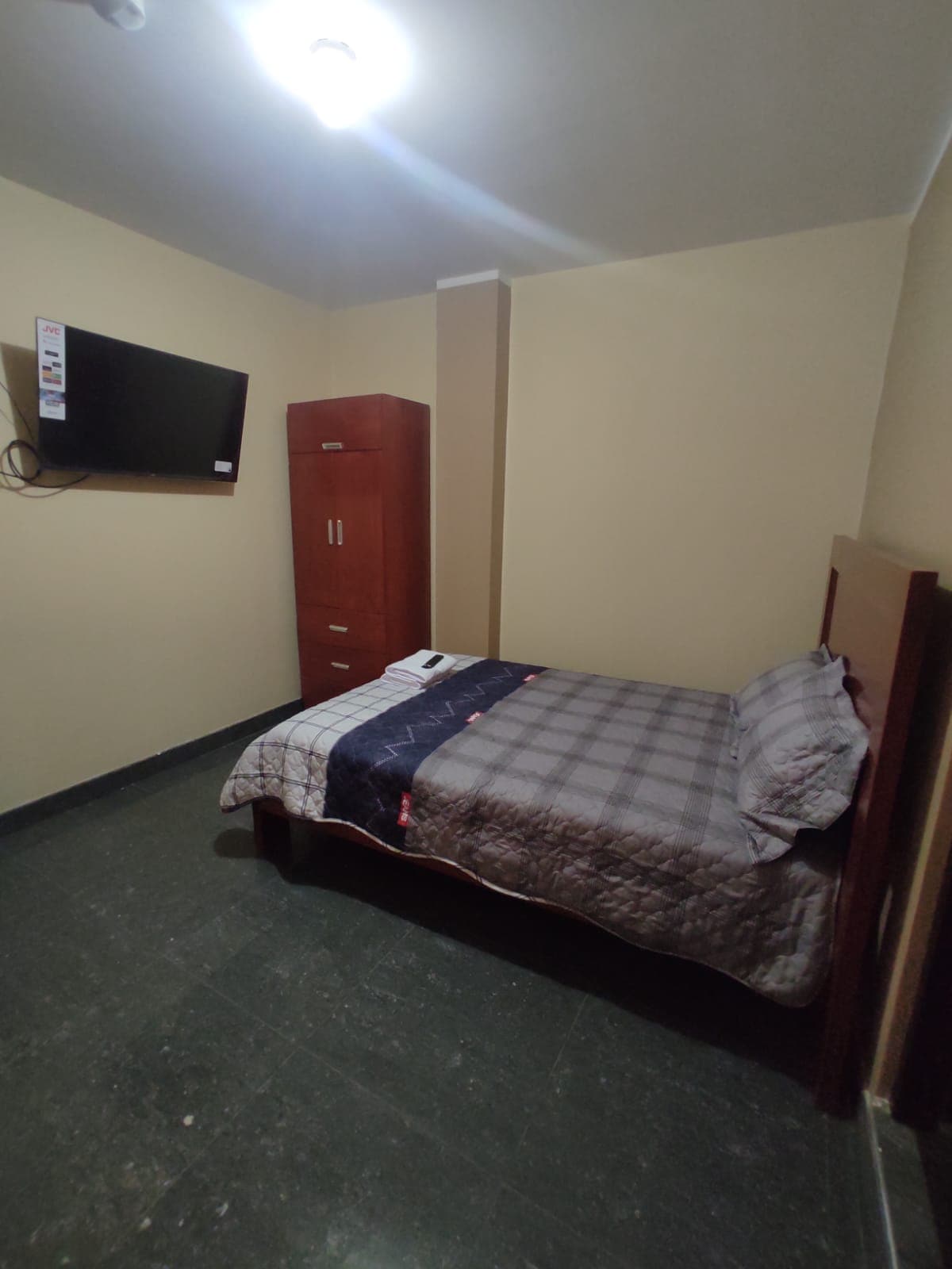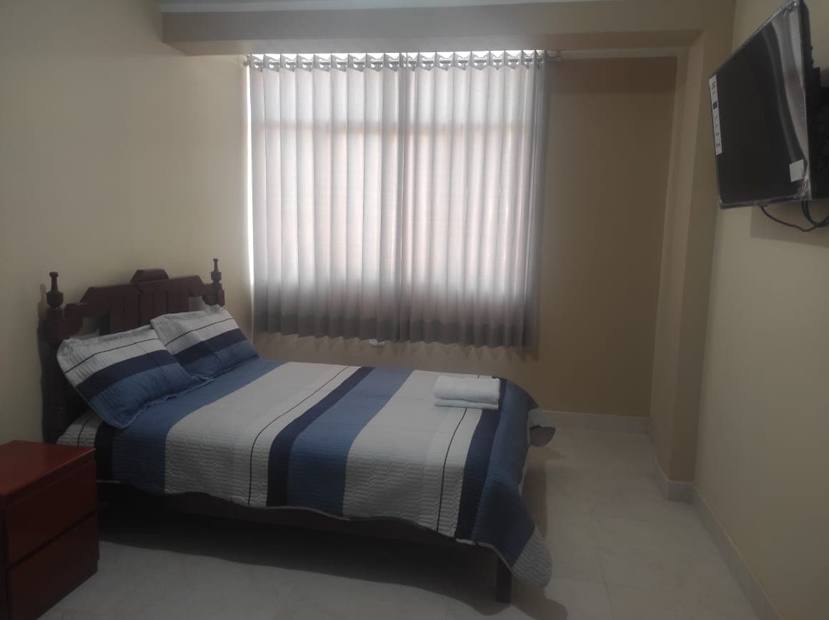 Bienvenid@ a nuestro apartamento en Chiclayo – La Victoria. Estamos ubicados en una de las zonas más bonitas y seguras de Chiclayo. A 5min del aeropuerto, del Real Plaza y del centro de la ciudad, a 2 cuadras del Jockey Club y a pocos pasos del Smart fit y los mejores restaurantes. Contamos en la habitación con una cama Drimer QUEEN. Tendrás acceso a Wi-Fi, en la sala contamos un Smart TV y Netflix. La cocina equipada y vajilla completa. Estoy para ayudarte en lo que necesites. Te esperamos!