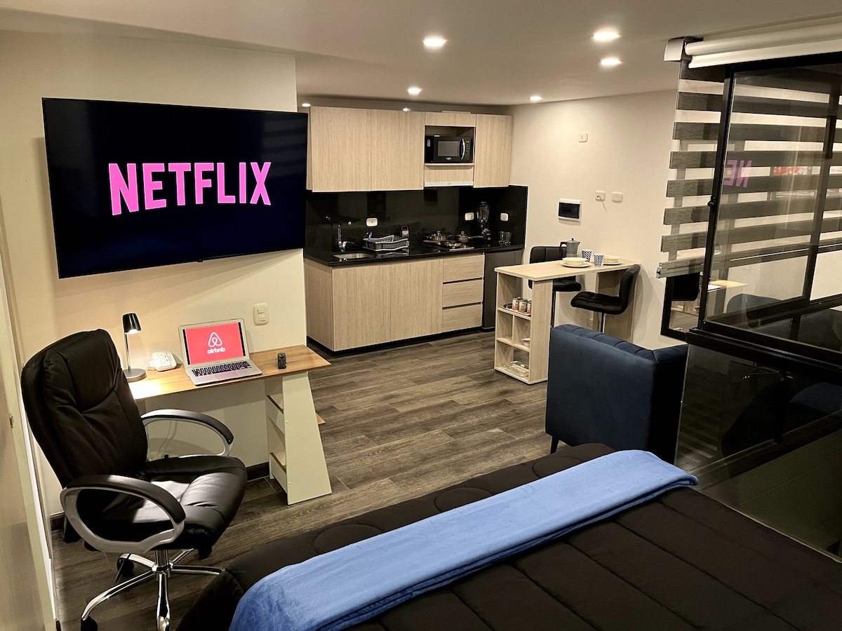 Moderno aparta-estudio a 10min 🚶♂️del parque la 93. Recien remodelado por manos de diseñador 👨🎨 , perfecto para estancias cortas o largas. Cerca de restaurantes, bares y centros comerciales. ✅ agua caliente ✅ 2 Smart TV ✅ cocina full equipada ✅ internet alta velocidad ✅ Estacionamiento privado gratuito. ✅ lavandería (pago adicional) ✅ café gratis Durante el día, puede haber ruido de construcción en el edificio contiguo. Agradecemos tu comprensión. Escríbenos
