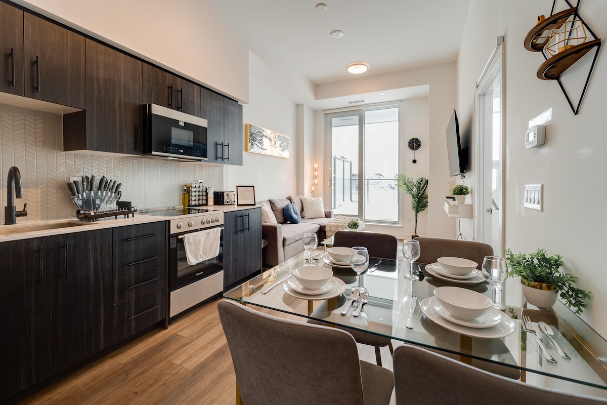 **Hydro spa hot tubs are open! **Fully licensed Airbnb - no hassle during your stay! **Stunning Interior decor, guests'' unique experience **Unmatched amenities in town! you must check out the amenities' pictures **Corner unit with stunning city views ** Location! Heart of Kitchener, centrally located to grocery stores, hip restaurants/bars, cute local shops, parks & happening city life ** 3 mins walk GO Station. 126 Weber St. W **Across Goo-gle Head office w/ LRT rail at doorsteps