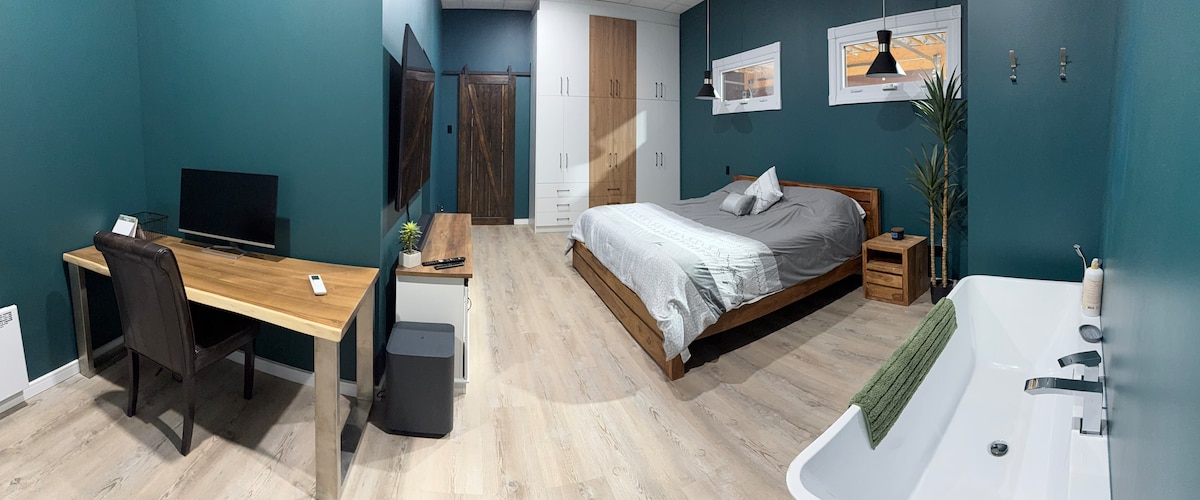 4 1/2, neuf, urbain et intime. 2 grandes chambres lits doubles et un sofa-lit confortable à votre disposition. Rue tranquille au coeur de la ville, près de toutes les activités socioculturelles, des restos, de la Place du citoyen, du vieux-port, l'hôpital, l'université et le cégep. Piste cyclable et randonnées urbaines à proximité, dont un pont destiné aux marcheurs et cyclistes. À 30 minutes des majestueux Monts-Valins. No enregistrement 304285