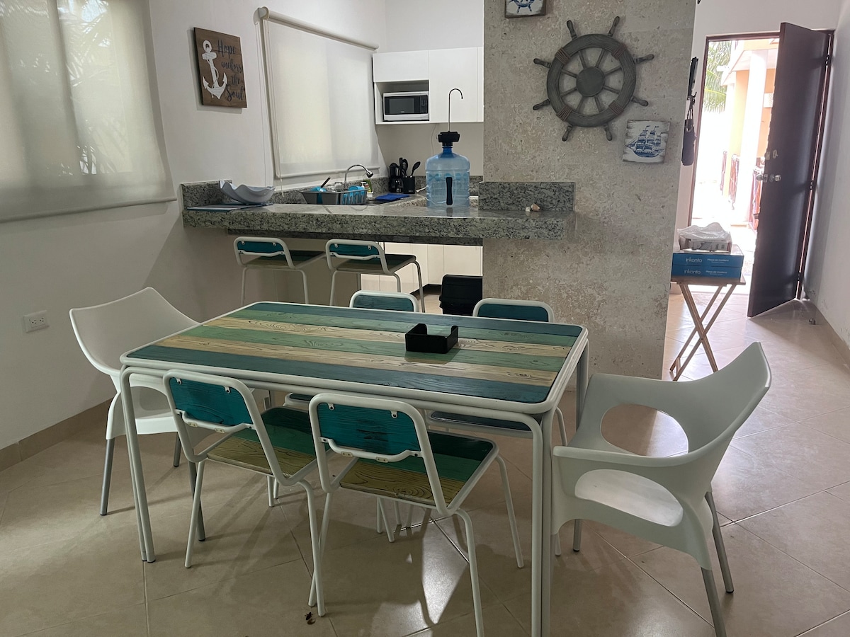 Disfruta de una visita memorable junto a la playa. Cómodo departamento que podrás disfrutar con tu familia. A solo 3 km del malecón de Progreso, a 2 cuadras del centro de Chixchulub Puerto.