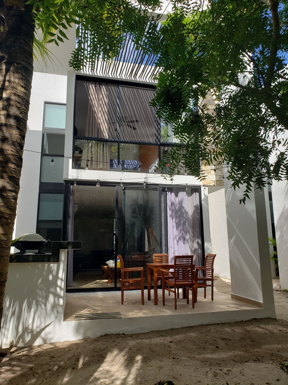 Villa Lujosa decorada vibra "Tulum" con acabados y muebles de lujo. Perfecta para unas vacaciones frente al mar Disfruta la terraza y una pequeña piscina para refrescarte saliendo del mar. Duerme la siesta en una hamaca con una espectacular vista desde la habitación principal y disfruta el sonido de la naturaleza. No cobramos energía eléctrica y tenemos generador de energía para emergencias, así que nunca te quedaras sin energía y sin aire acondicionado, que por cierto tenemos en todos lados :)